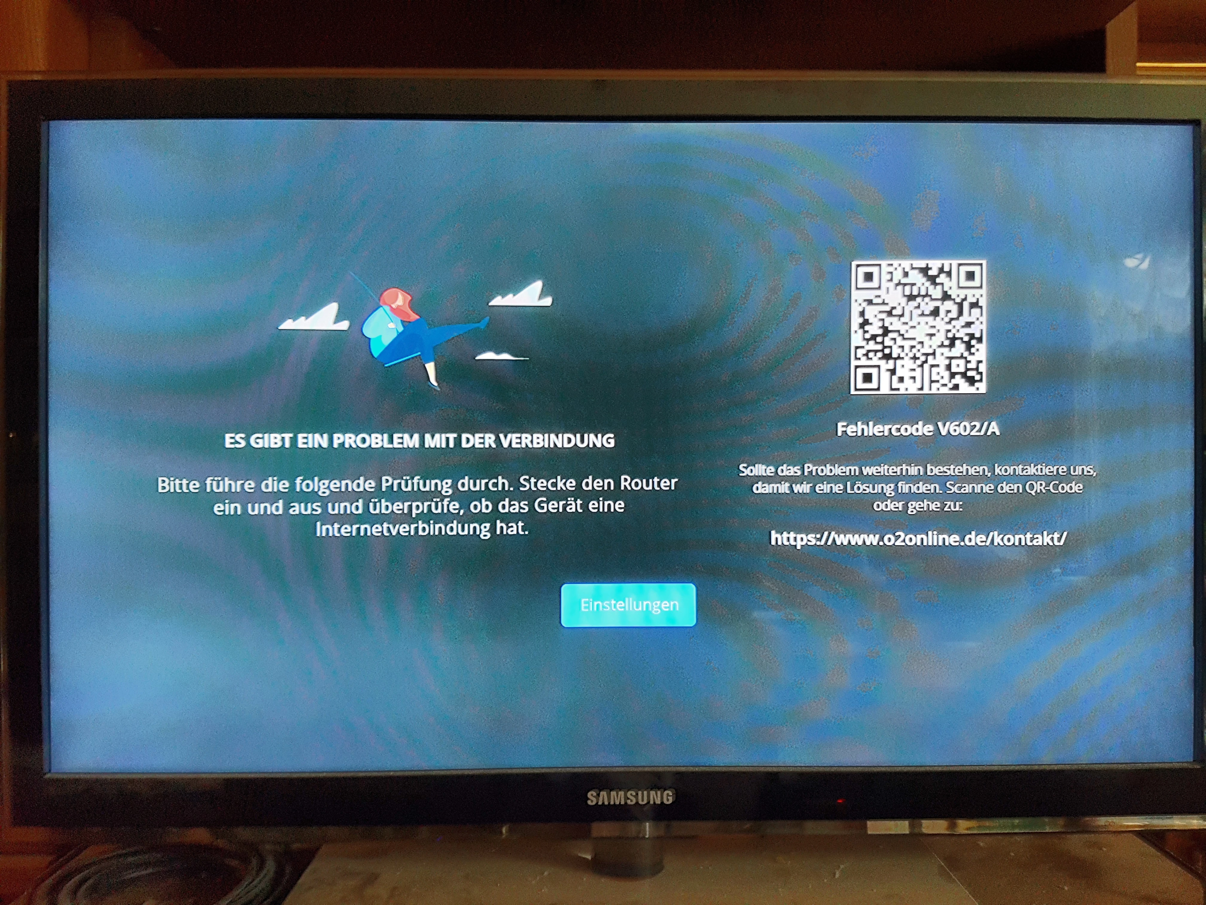 Seit über 10 Stunden funktioniert bei mir o2 TV nun fast gar nicht mehr. Wenn ich die App auf dem Handy oder auf dem TV-Stick starte, kommt in etwa 95% der Fälle sofort die Meldung, dass keine Internetverbindung vorhanden sei (Verbindungsfehler). Was natürlich nicht stimmt, alles andere funktioniert ja. Wenn es dann mal irgendwann zufällig klappt, dauert es etwa 30 Sekunden, bis der Stream beim Umschalten startet oder alternativ eine Fehlermeldung kommt (“Wiedergabefehler” oder “Es gibt ein Problem mit der Verbindung” -> Fehler V602/A). Insgesamt ist die Verfügbarkeit von o2 TV absolut miserabel. Und das an einem Samstag, dem klassischen Fernsehabend.