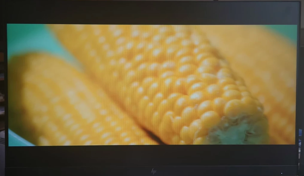 Ich hab es mal mit “the house that jack built” in 2.39:1 (widescreen) aspect ratio auf meinen beiden Monitoren getestet. (Sorry für die schlechte Fotoqualität, ich musste das ganze mit dem Handy fotografieren, mal sollte die wichtigen Punkte aber erkennen.)