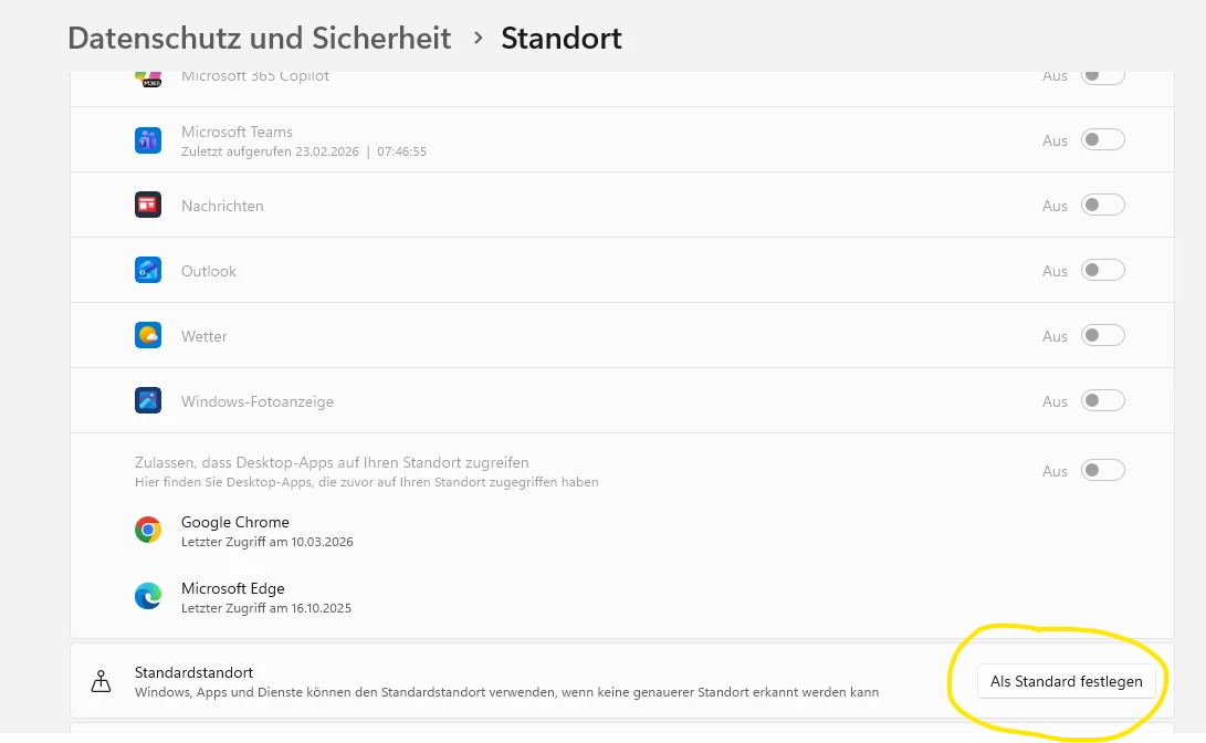 @bearstix Bezüglich des Heimnetzes: Falls du WIN11 nutzt kannst du in den Einstellungen am PC und Laptop selber einen Standort manuell festlegen.