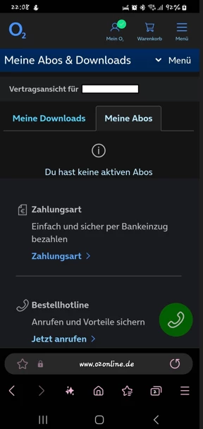 Das Abo wird nicht angezeigt. Läuft auch über eine andere Nummer
