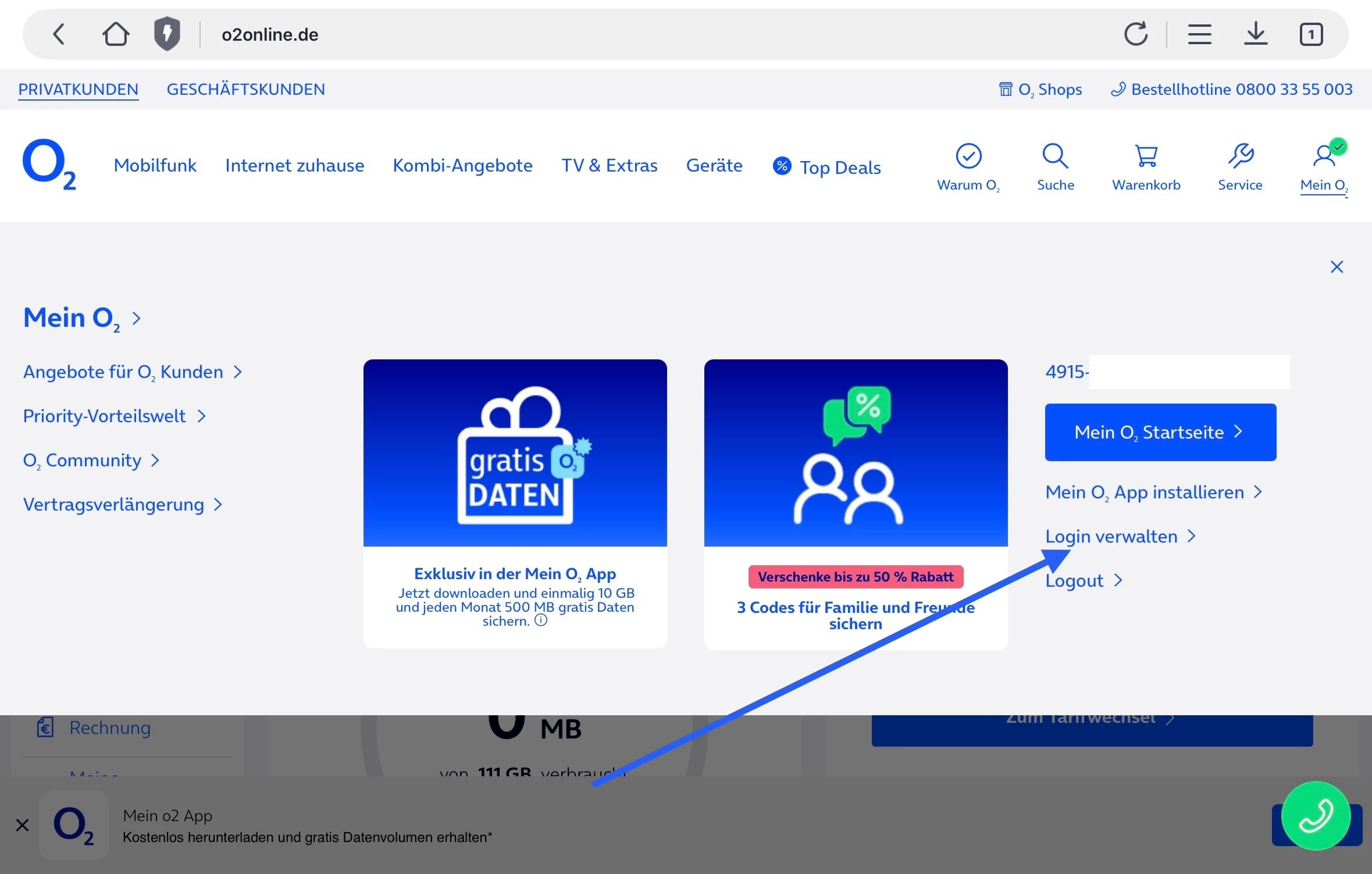 Das heißt du kannst dich auch nicht in Mein o2 anmelden?