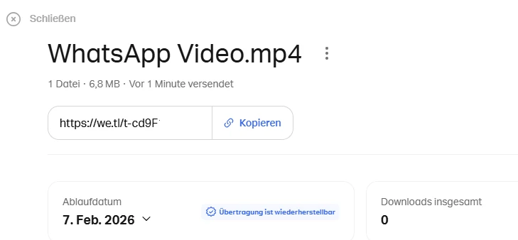 @OliMan Du hast wetransfer genutzt? Dann kannst du einfach eine deiner Mail Adresse angeben. Danach kannst du auch einen Link teilen, der wird dir auf der Seite rechts angezeigt
