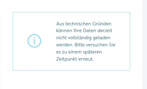 Wenn ich mich bei o2online einlogge, wird weiterhin eine Fehlermeldung ausgegeben, dass nicht alle Daten geladen werden können.