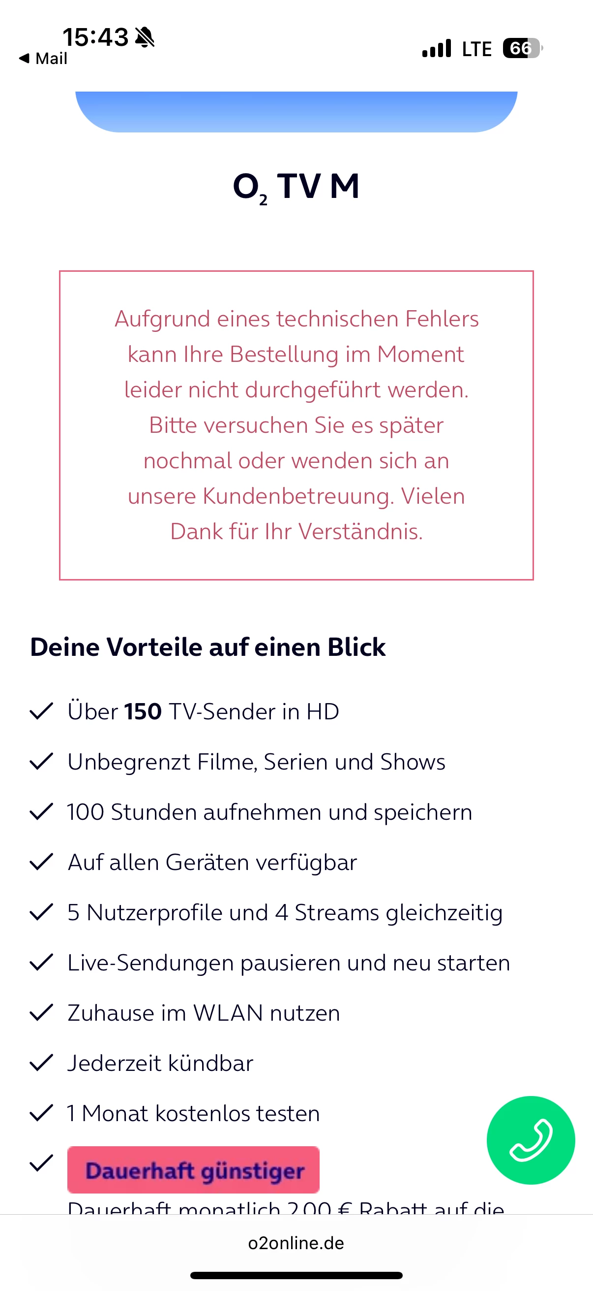 o2 TV buchen nicht möglich aufgrund technischer Störung