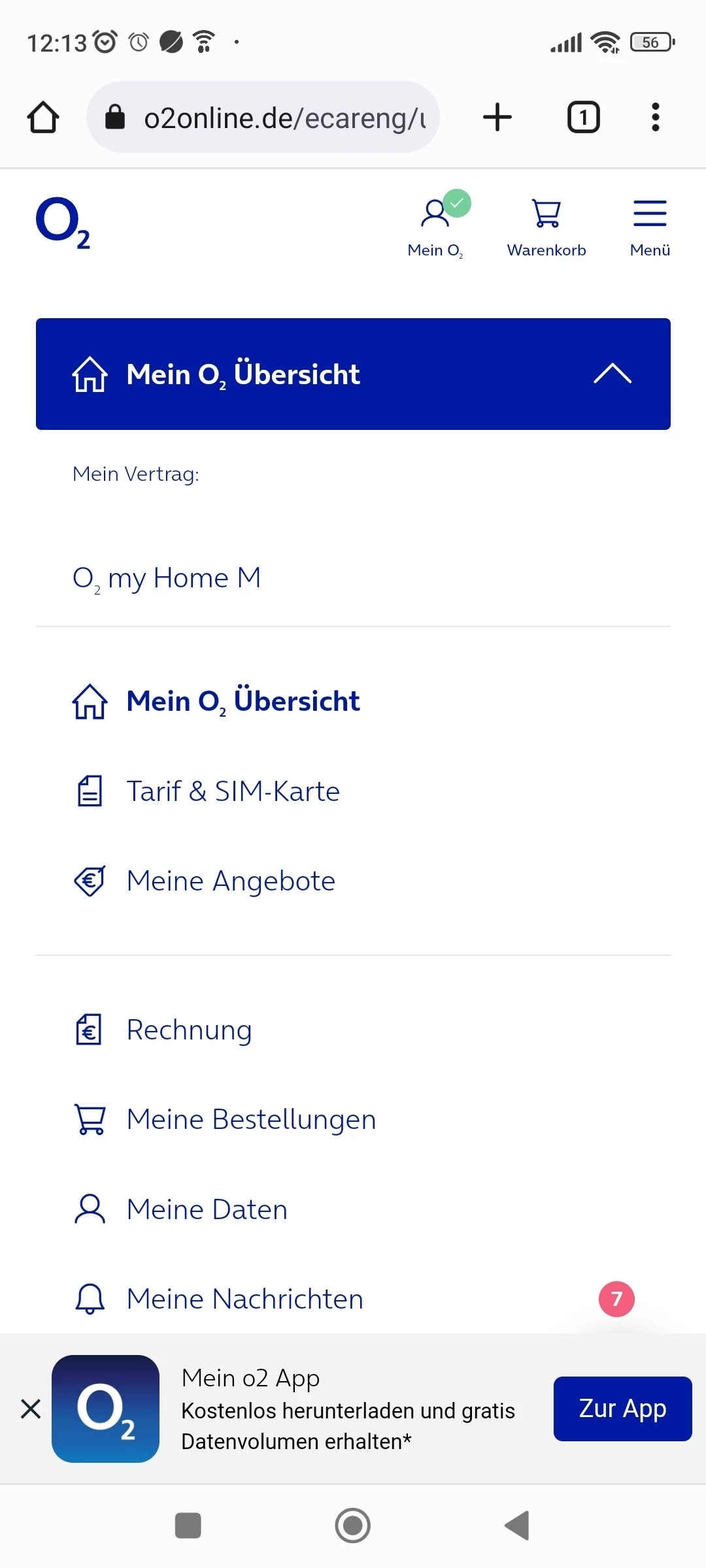 Egal ob ich über die MeinO2 App oder den Browser versuche das Paket zu buchen, lande ich nach kurzer Ladezeit immer wieder in meinem Übersichtsbereich.Nichts gebucht. Nichts im Warenkorb.Keine Fehlermeldung.