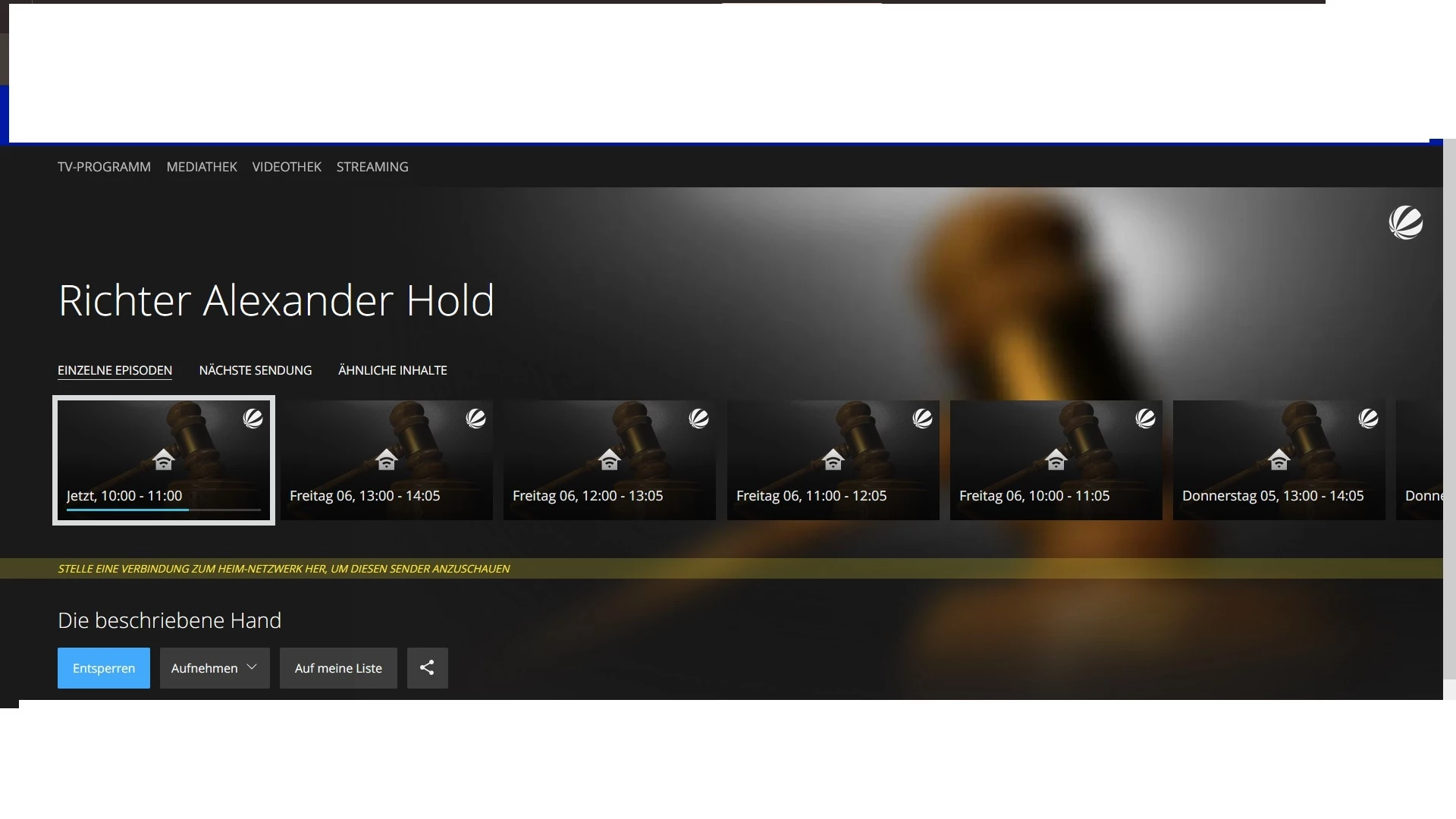 Fehlermeldung ist die typische mit dem grauen Häuschen auf den Privatsendern. Gerät befindet sich angeblich nicht im Heimnetzwerk.