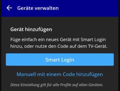 Damit das Heimnetzwerk korrekt angelegt werden kann, verbinden Sie bitte Ihr Handy mit dem Wifi-Netzwerk, in dem später auch der Fernseher genutzt werden soll. Schalten Sie am Handy die mobilen Daten aus und loggen sich in der App mit den Mobilfunk-Zugangsdaten ein. Die Ortung des Handys muss aktiviert sein. Über die Handy-App können Sie dann auch im nächsten Schritt in den Einstellungen auf die Geräteliste zugreifen und Ihren Fernseher hinzufügen.