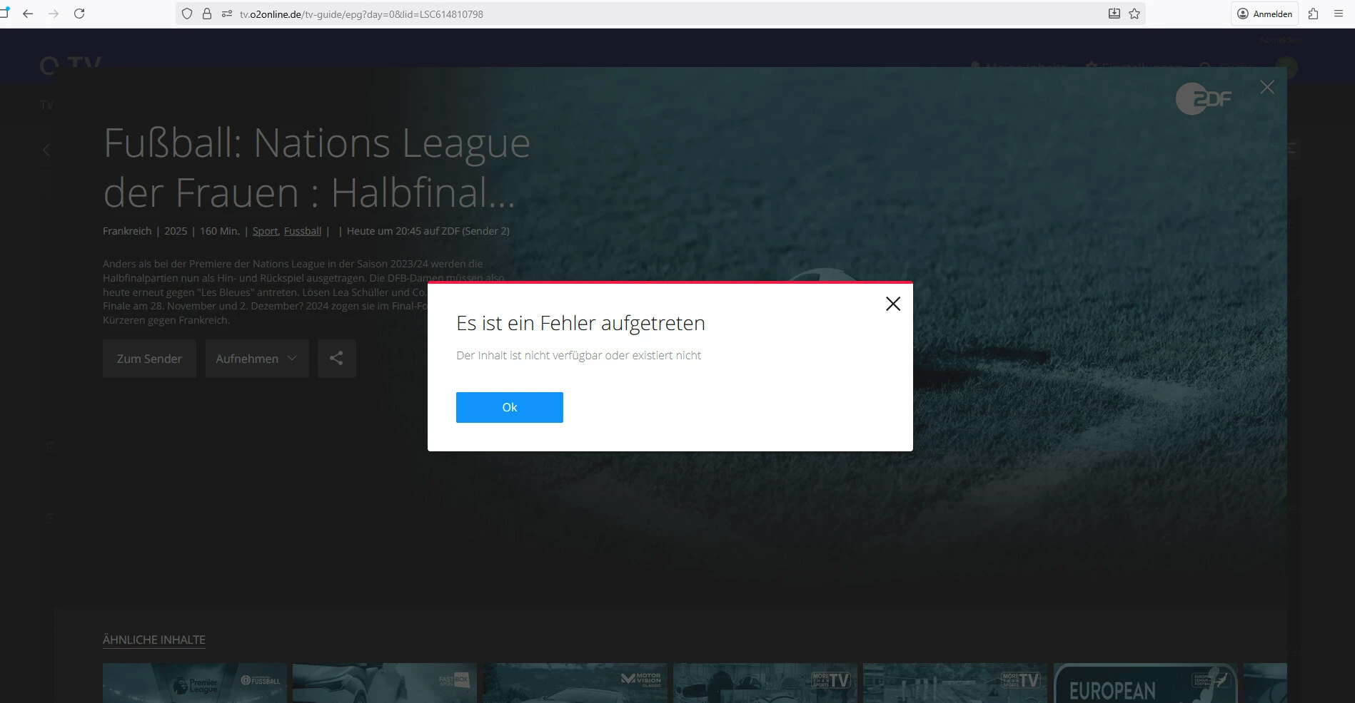 O2 TV keine Aufnahme möglich Fehlermeldung