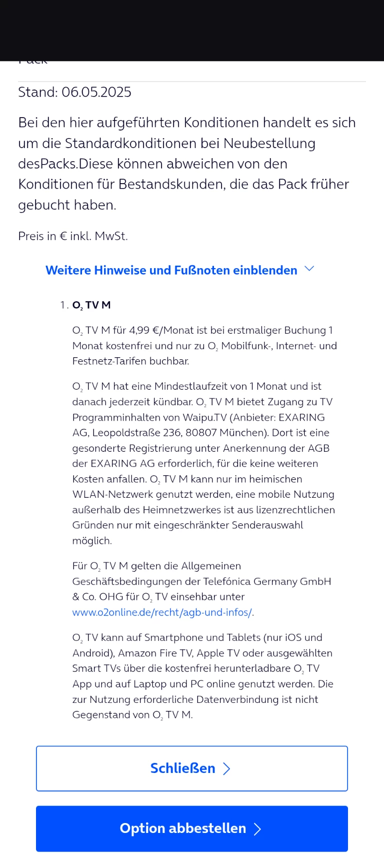 Matze hatte es ja schon angekündigt: deine Option wurde nicht umgeschaltet - o2 TV powered by WAIPU nun aber abgeschaltet :( Tut mir leid, dir da keine andere Nachricht mitteilen zu können!