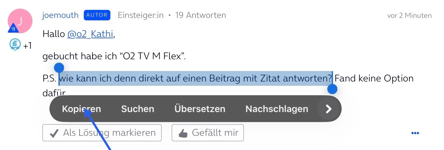 wie kann ich denn direkt auf einen Beitrag mit Zitat antworten?
