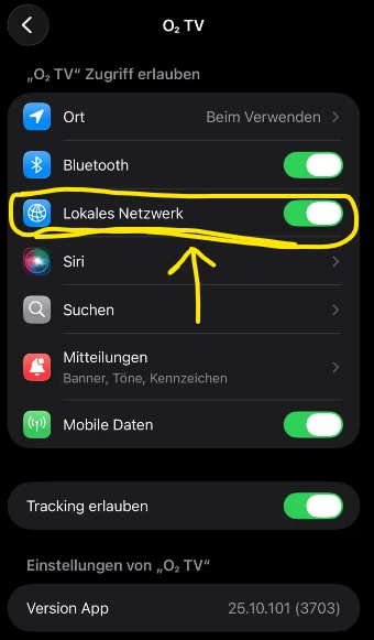 vorherige iOS Version,  zwei Chromcast Dongle Gen.3, einer Gen.4. Einstellung identisch mit Mediatheken, Disney, Joyn …. alles funktioniert problemlos, inklusiv dem Android-Tablett…. Nur O2 TV mit Apple App nicht …. Kann es eventuell mit dem M-Paket ( nur zuhause) zusammenhängen…?