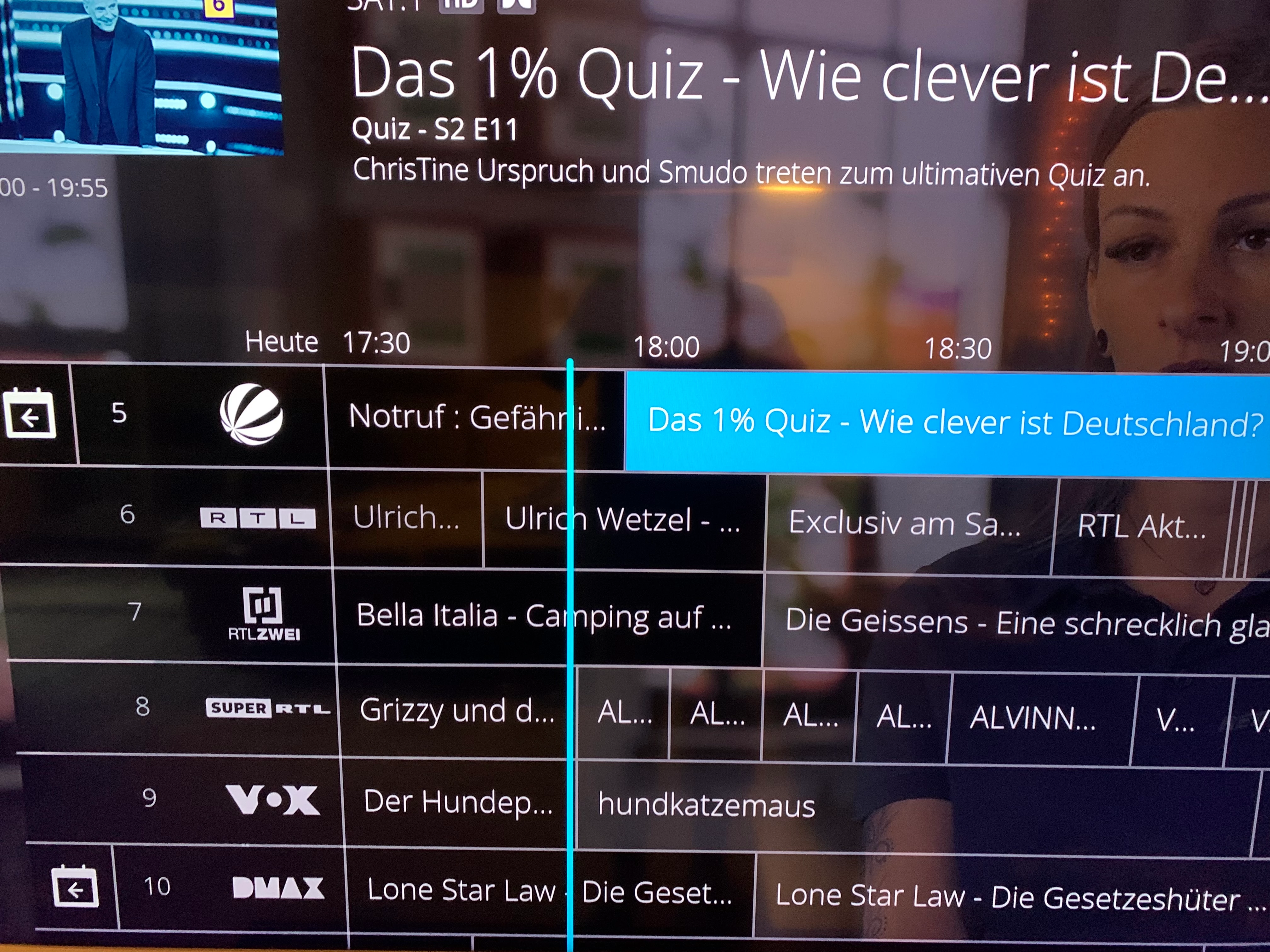 @Goolightly Wo genau soll die Zeitangabe fehlen? In der Programmliste wird oben links ein Bild zur Sendung angezeigt und direkt darunter steht die genaue Sendezeit. In der aktuell ausgewählten Sendung sieht man über die Ok-/Bestätigungstaste diese Zeitangabe ebenfalls mit einer Skala zum bisherigen Fortschritt. Bei den Blöcken läßt sich die Dauer zudem schätzen. Mir persönlich reichen diese Darstellungen.