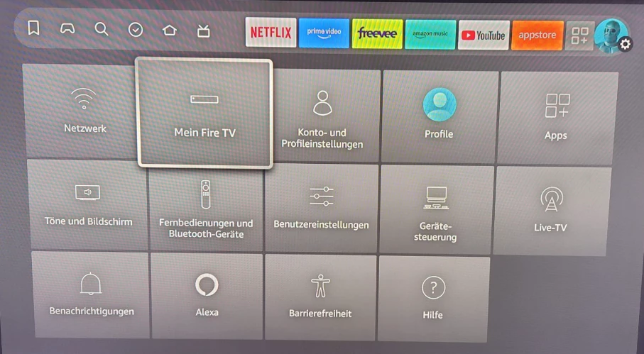 Du gehst auf das Zahnrad ganz rechts und dann auf Mein Fire TV