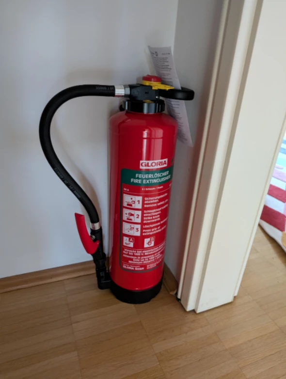 Wir haben hier zu Hause auch einen kleinen Feuerlöscher.