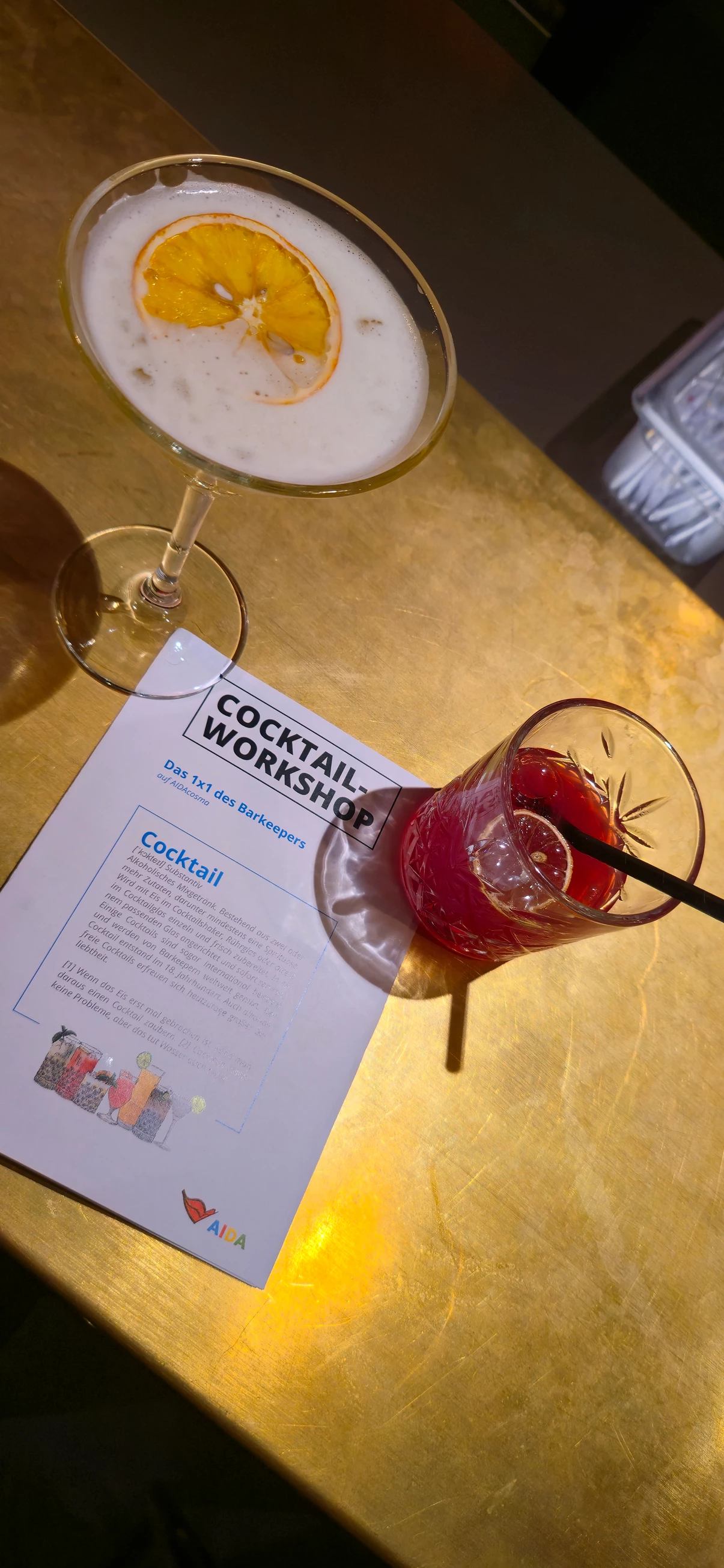 Ich dachte mir irgendwie, dass das ziemlich früh ist, aber wir hatten auch ziemlich viel Wellen und Wind von hinten. Nachdem ich am ersten Seetag ein Rum-Tasting gemacht hatte, so sollte es mich diesmal etwas mehr fordern. Bei einem Cocktail-Workshop bekam ich einen Einblick in die Tätigkeit als Barkeeper und in das Zubehör zum Mixen eines Cocktails. Shaken, Rühren und die richtige Dosierung von Spirituosen, sowie von Säften und Sirup, wurde uns erklärt und gezeigt. Nach dieser spannenden Einweisung durften wir auch selbst den Shaker mit Eis befüllen und einen Drink zubereiten. Ich, ohne Erfahrung, fand das sehr fordernd.