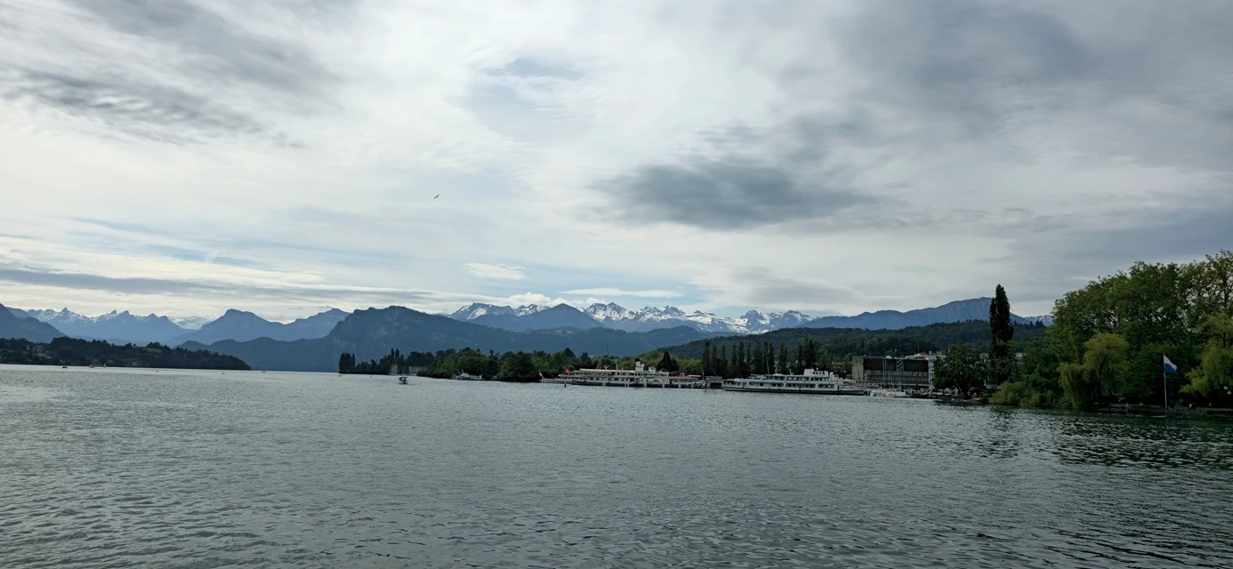 Am frühen Morgen, kurz vor 06:00 Uhr, ging es für den heutigen Tagesausflug mit dem ICE nach Basel SBB. Weiter ging es mit der SBB nach Luzern, was eine schöne Fahrt ist. Hier empfiehlt es sich in Fahrtrichtung zu sitzen, sodass man die Berge (teilweise schneebedeckt) auf sich zukommen sieht. Die Schweiz ist für ihre Pünktlichkeit bekannt und so kam der Zug, natürlich, pünktlich (um 09:30Uhr) in Luzern am Bahnhof an.