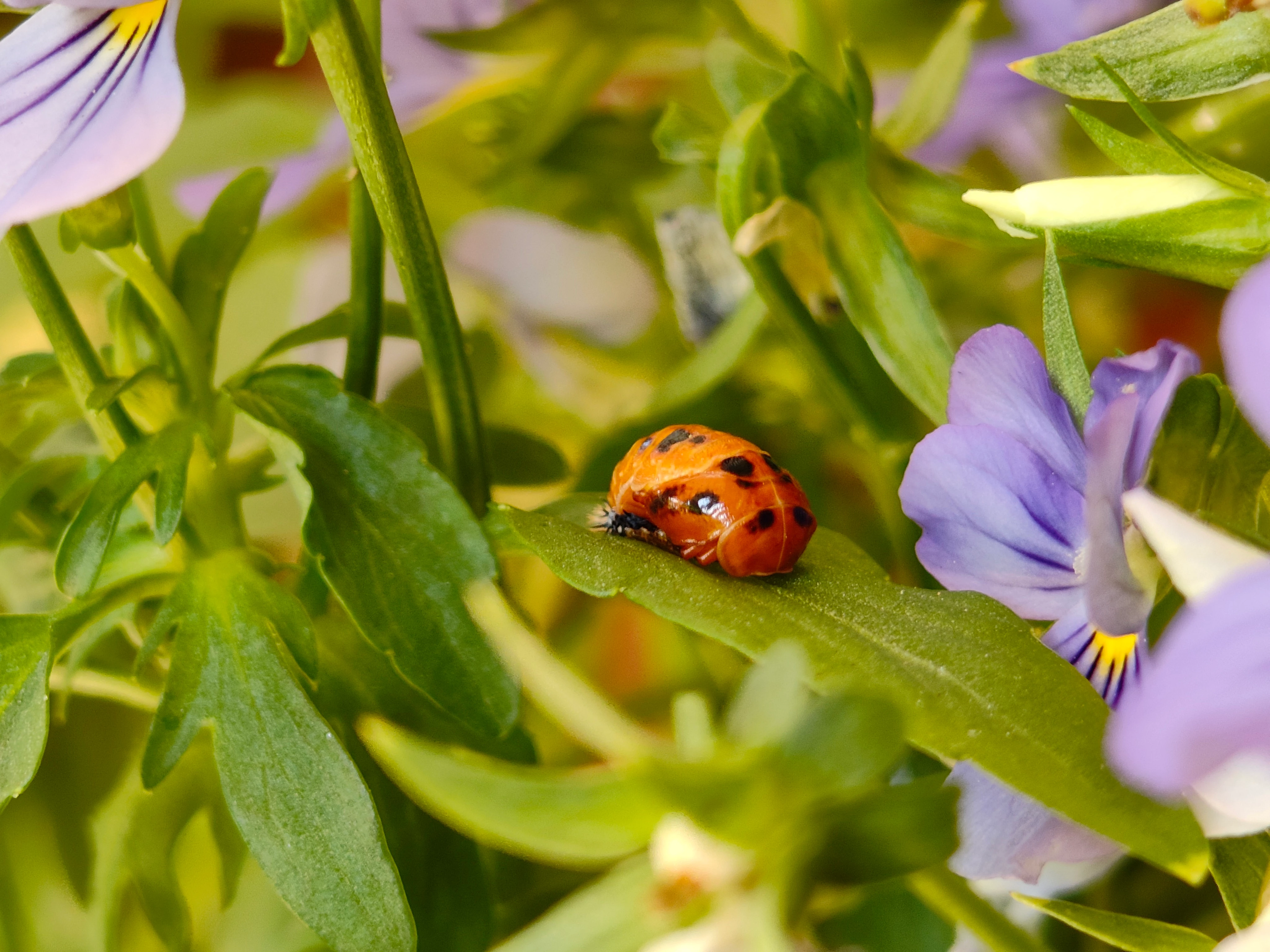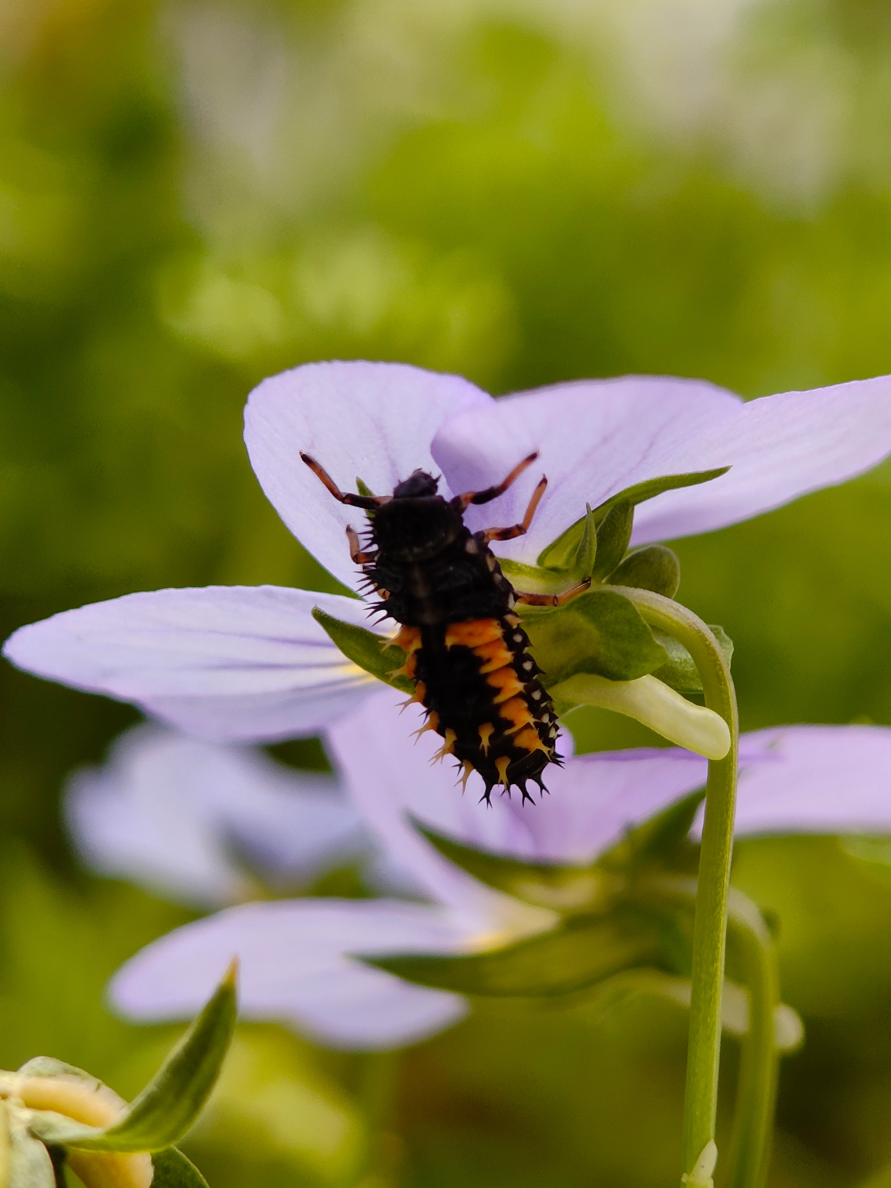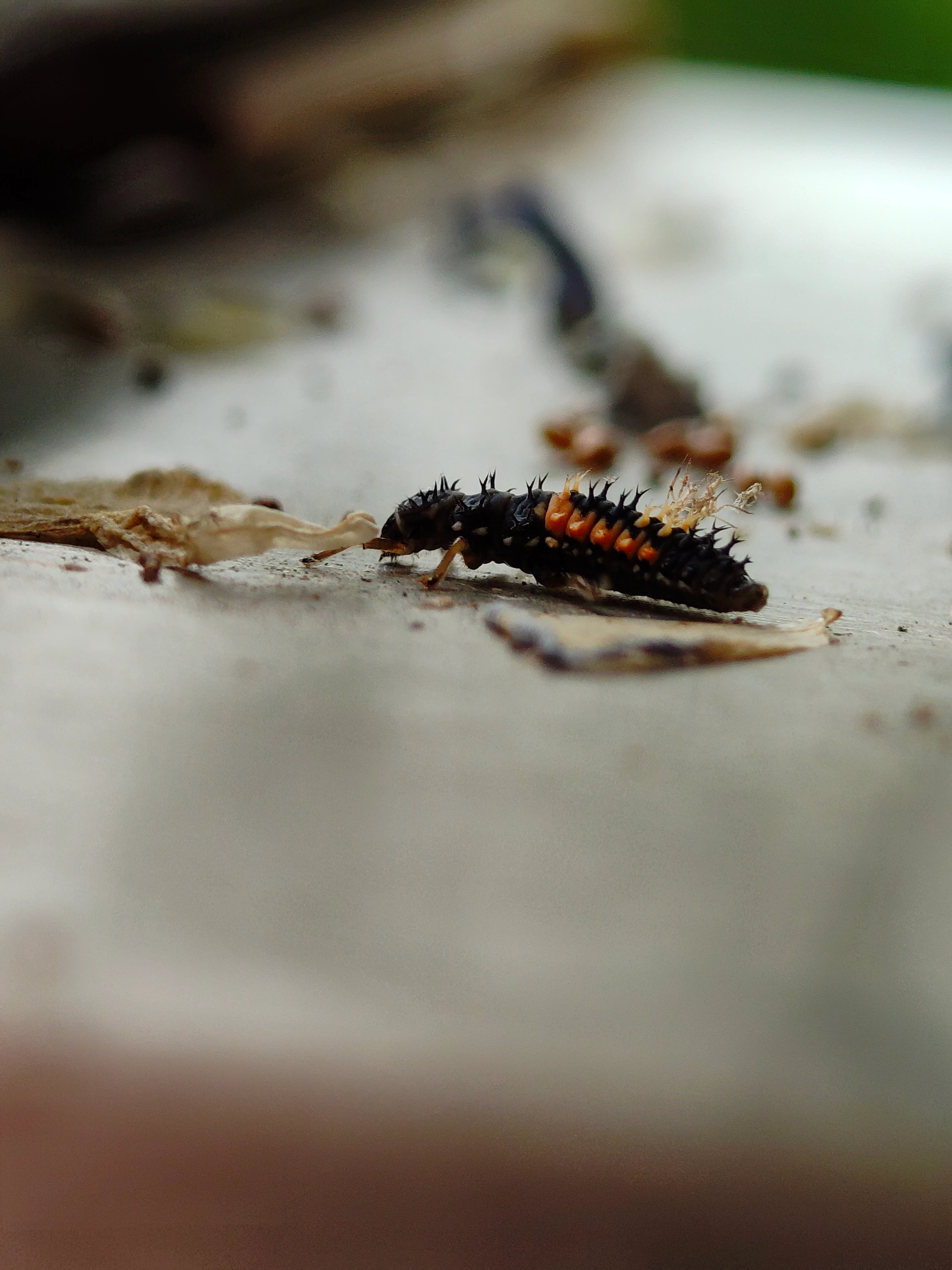Die waren auf einmal überall und irgendwann schickte mir meine Frau die Auflösung: Es ist eine Marienkäferlarve. Die sind echt flink unterwegs und teilweise echt schwer zu fotografieren, aber hier noch ein paar Bilder: