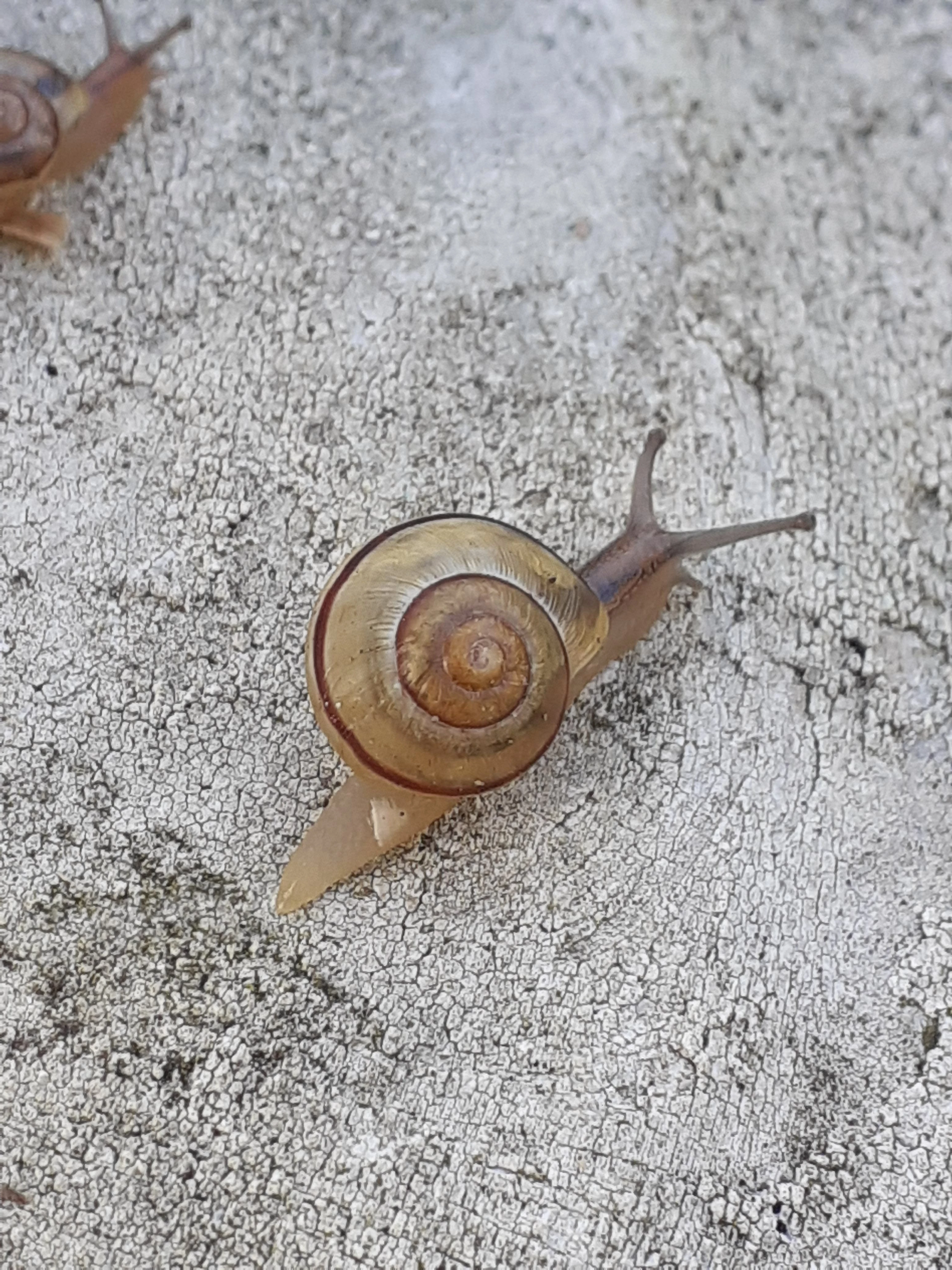 jung Schnecken, noch fast durchsichtiges Gehäuse