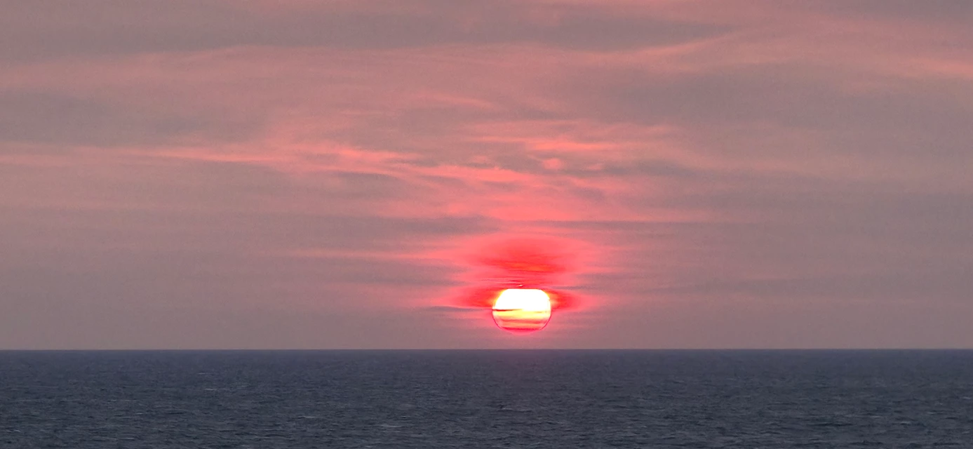 Dabei war schon das Auslaufen aus dem Hafen von Kiel, an Bord der Color Fantasy, ein emotionaler Höhepunkt dieser Reise. Durch die Kieler Bucht ging es dem Meer entgegen. Anders als beim ersten Mal konnte ich mich auf dem Schiff besser zurechtfinden und war damit auch wirklich schneller unterwegs. Mit einem leckeren Essen, einem guten Cocktail, Jazz-Musik in der Bar, aber auch einem kleinen Obstteller in der Kabine, ließ ich den Abend ausklingen. Und dabei nahm ich ganz nebenbei noch den Sonnenuntergang mit.