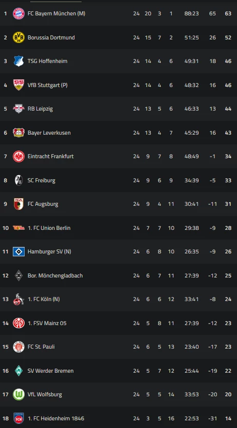 Der Titel(kampf) ist entschieden weil der glorreiche FC Bayern immer hungrig ist. Es geht jetzt nur noch um den Abstieg und die Europaplätze, achja und natürlich um den Torrekord aus der Saison 71/72 und die absolute Torjägerkanone. Am Ende feiern die Bayern, mal schauen wie oft. Ein rein deutsches Finale in der Champions League halte ich leider für ausgeschlossen. Wenn Leverkusen so weiter macht, dann spielen die nächste Saison nicht international.