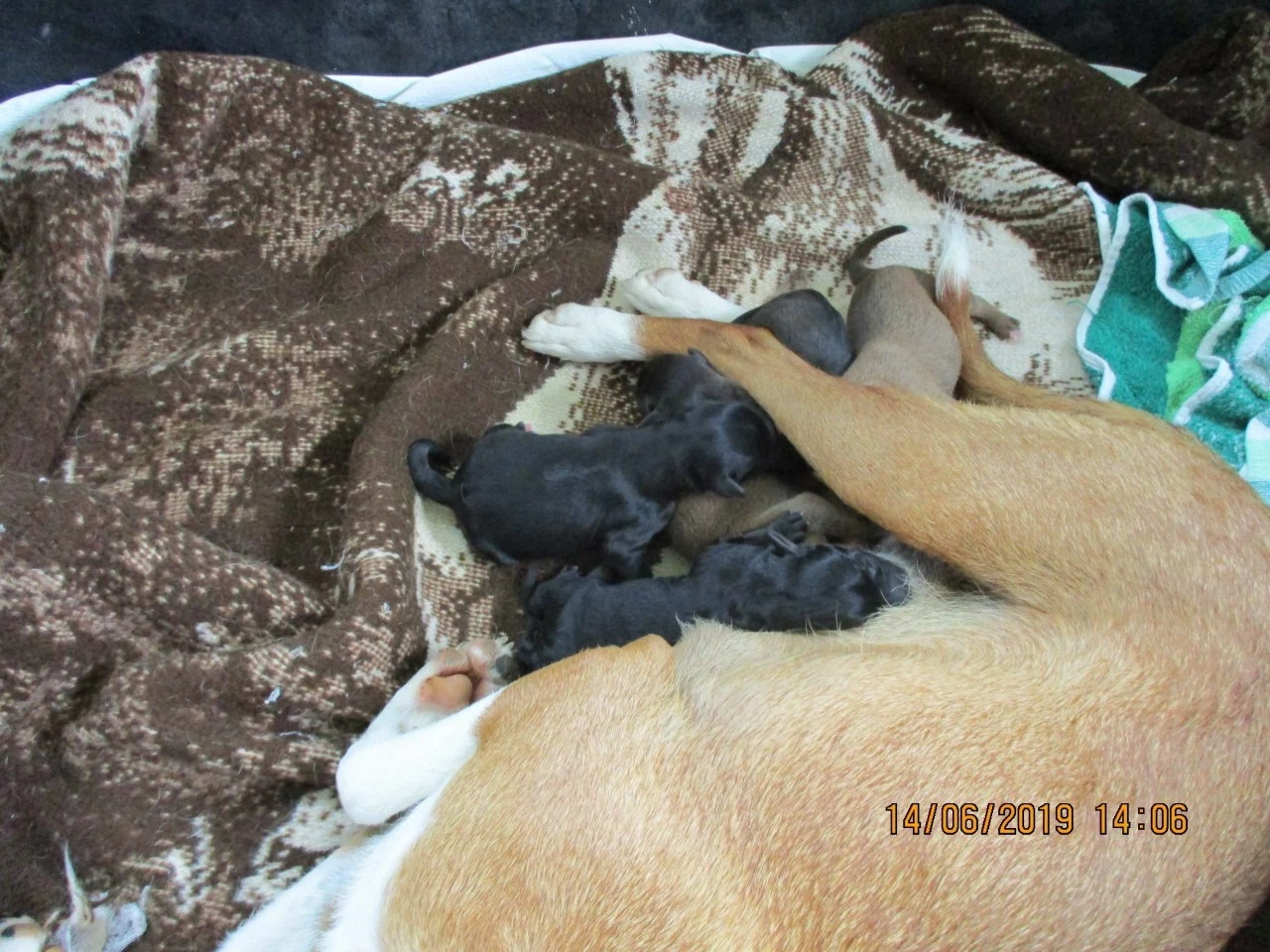 eigentlich waren wir trotzdem beim Tierarzt und haben für fast 100 Euro was spritzen lassen ("Pille danach") und haben noch mal 2 Wochen aufgepasst und dann hingen sie am 13.April noch einmal zusammen und am 13.Juni sind dann 5 süsse Welpen zur Welt gekommen