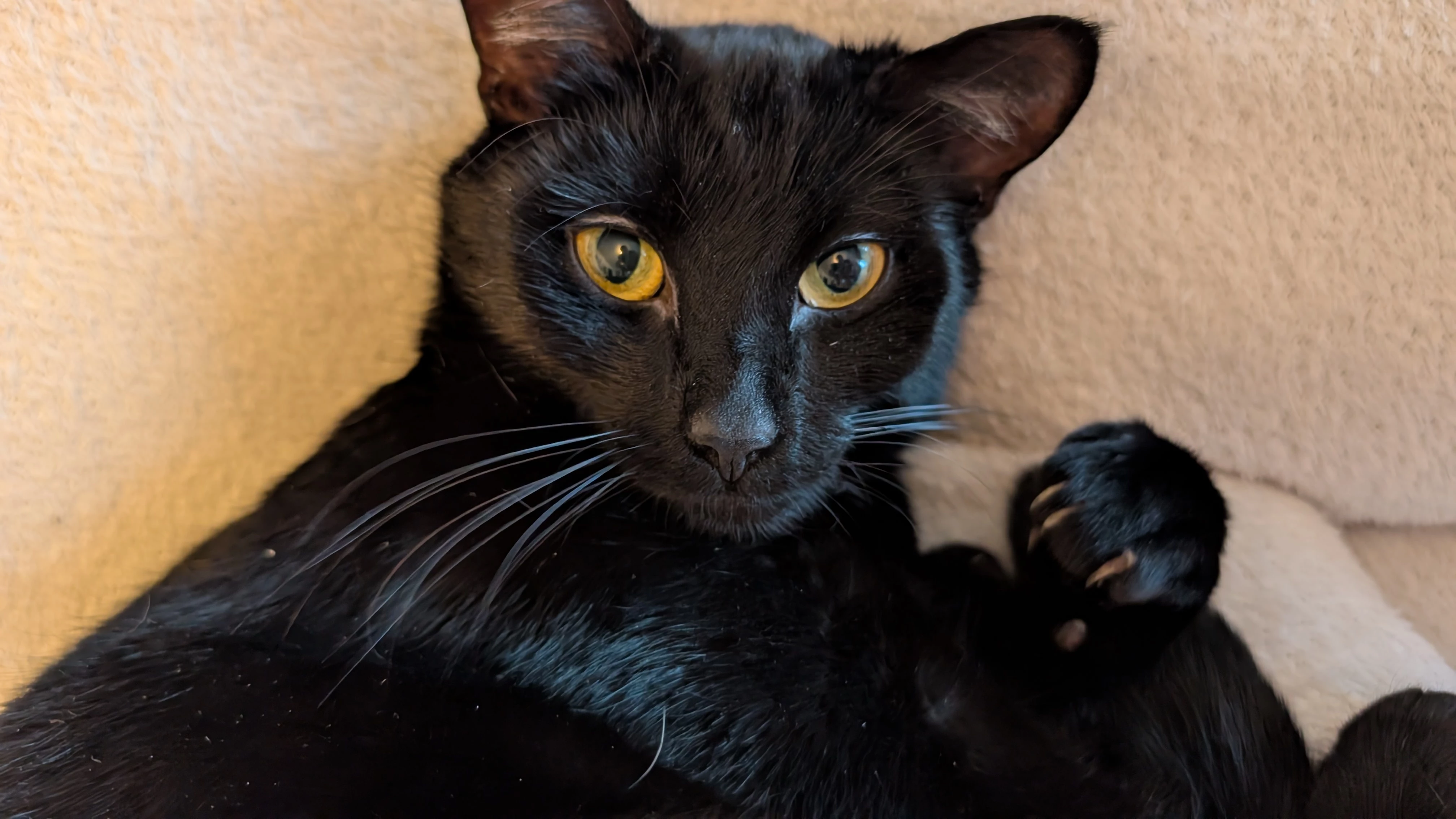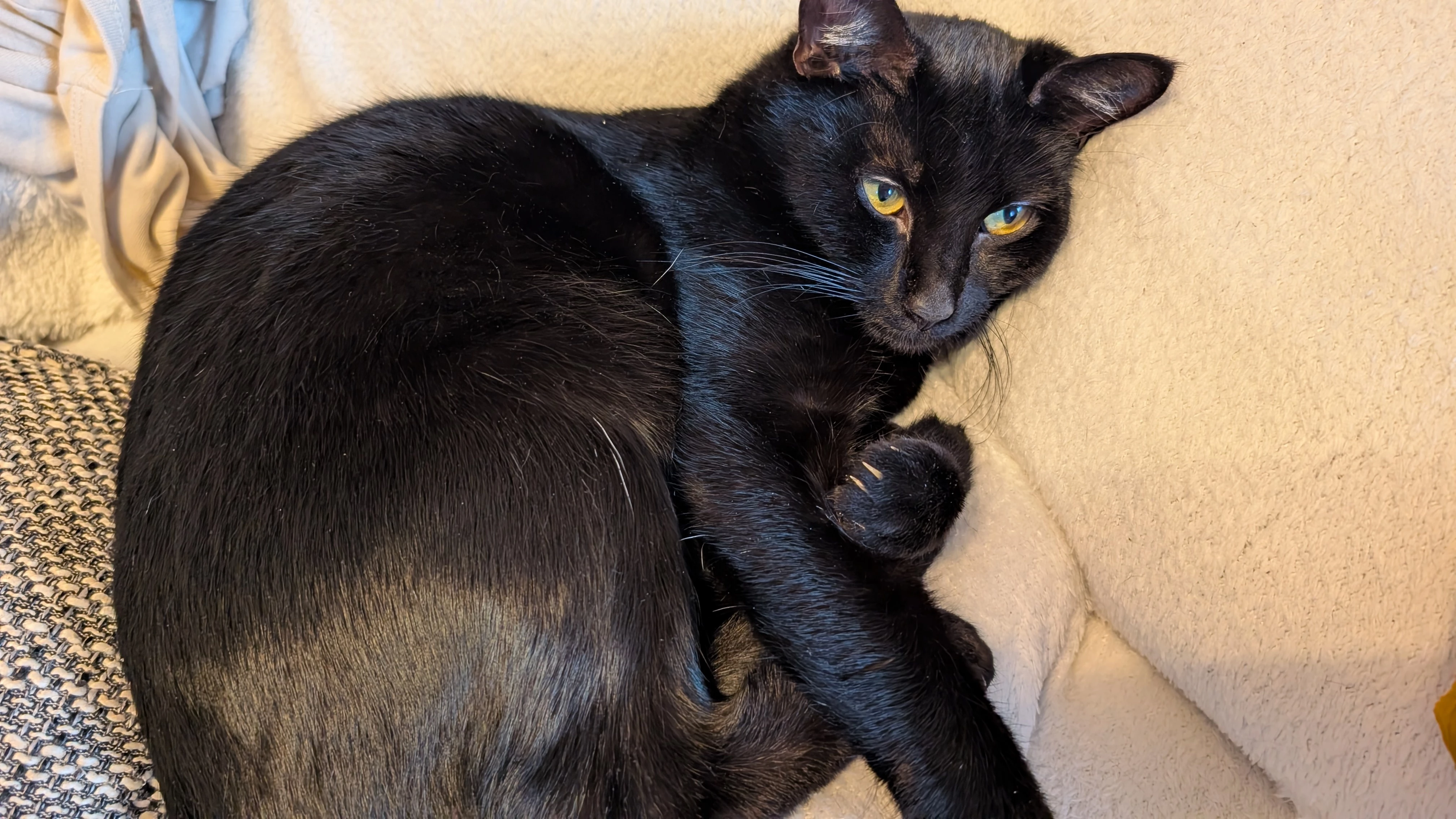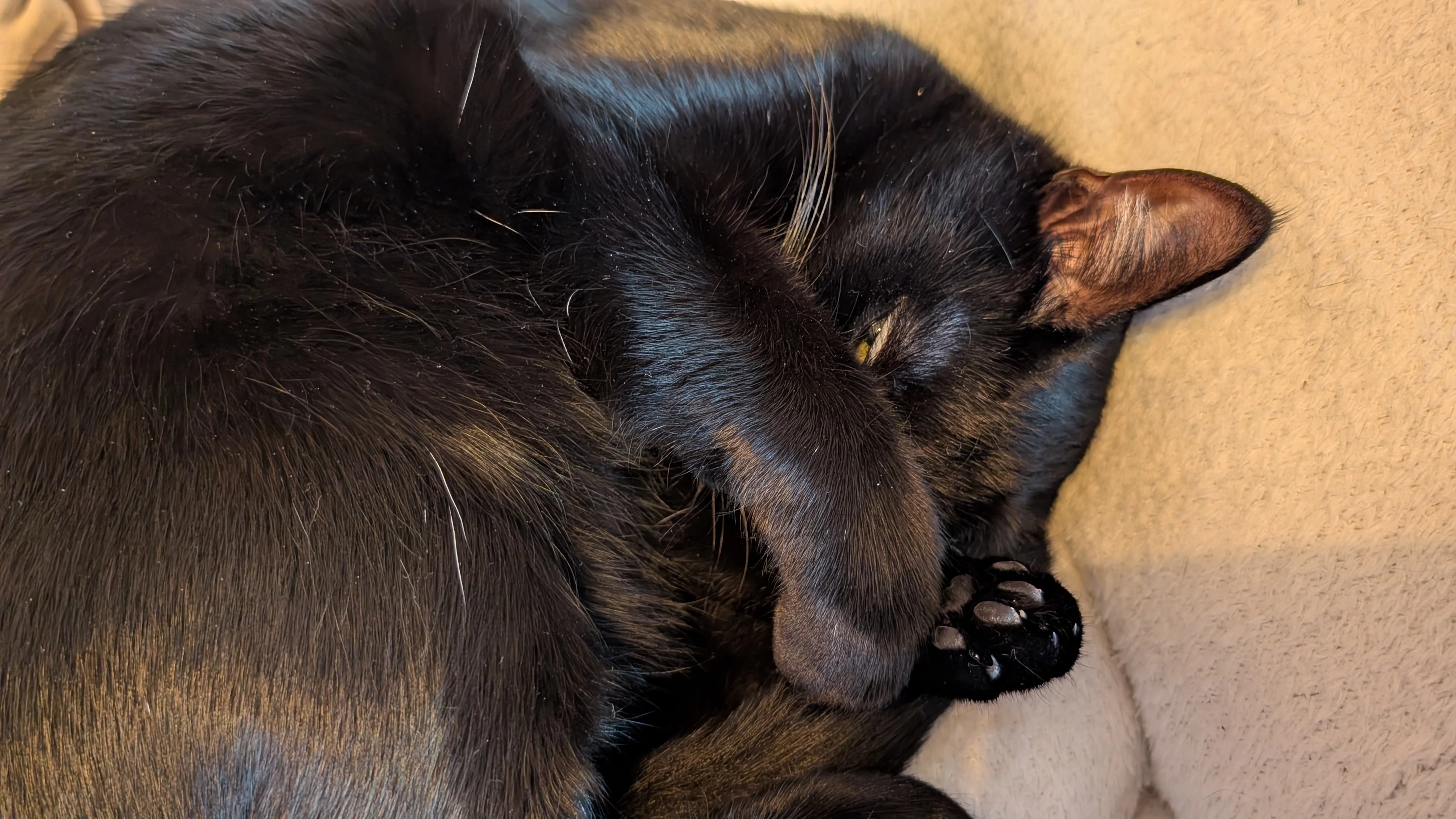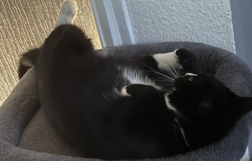 Da hat war sie gerade mit dem hin und her wälzen beschäftigt (Fell hat wohl gejuckt) und ist dann vom Kratzbaum gefallen😂