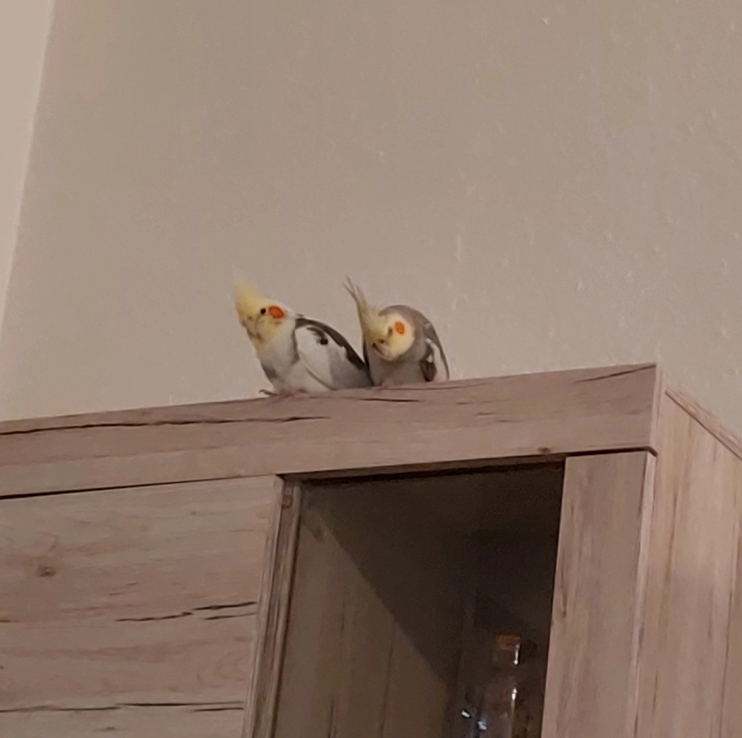 Und meine 2 Nymphensittiche Lili und Leo, beide um die 6 Jahre jung. Lili die Zicke, Leo der Ausgeglichene. Lili ist mal abgestürzt, kam von selbst nicht mehr hoch. Chico ging hin, nahm sie in den Mund ganz sachte und legte sie auf der Couch ab. Lili hat sich kurz durchgeschüttelt und schwupps, Rundflug, ab in die Voliere 😅 Leider sind Beide aber immernoch nicht handzahm. Dafür bekommen wir aber eine Pfeif-Begrüßung wenn wir nach Hause kommen.