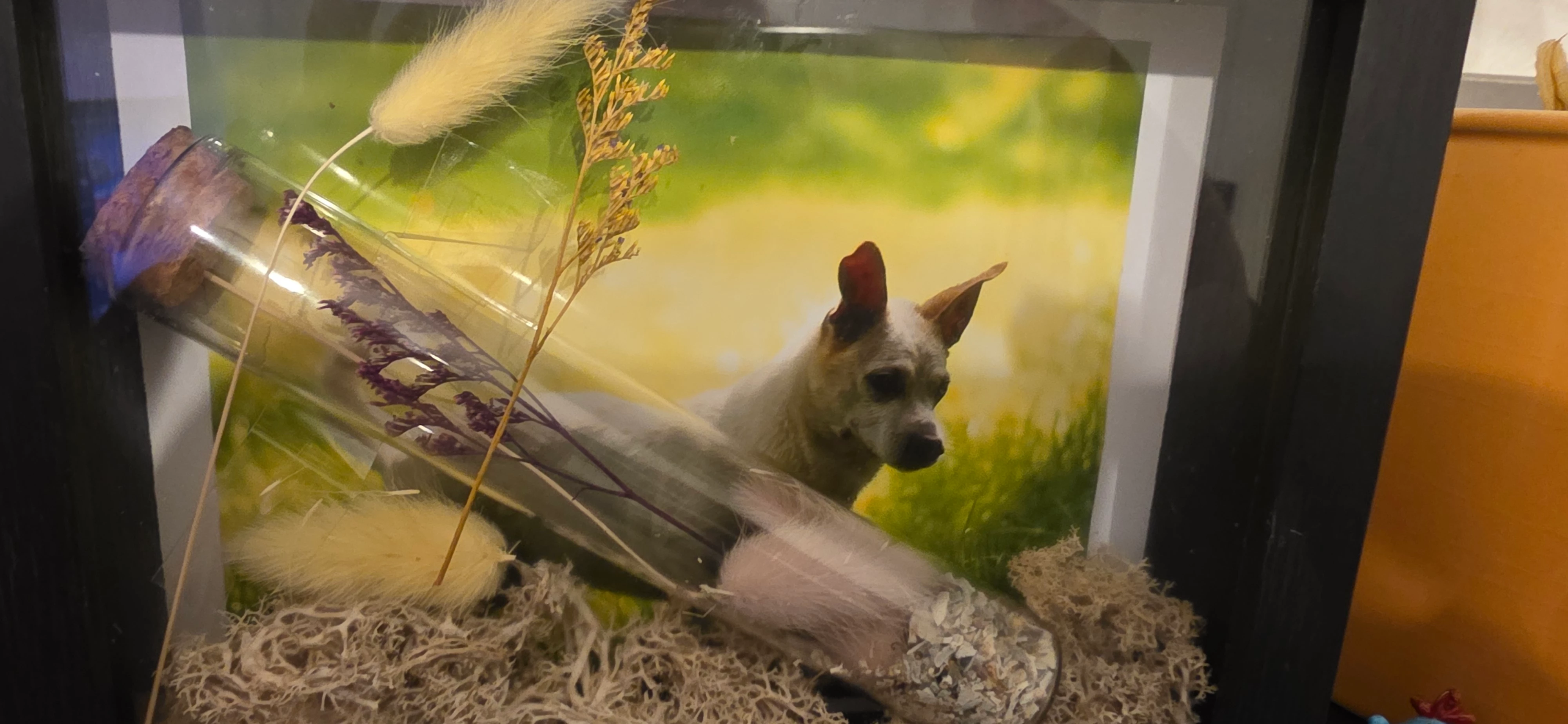 Ach, die Kila war nicht immer so entspannt. Ich weiss gar nicht, ob ich das hier schonmal erzählt hab, aber wir haben die damals von einer Messibauerin geholt, auf deren Hof tote Pferde lagen und sie hatte halt auch viele Hunde dort. Die Kila hat anfangs auf der Straße vor Allem Männer, aber auch sonst alles angebellt, von anderen Hunden (die mochte sie generell nicht, sicherlich aus schlechter Erfahrung), bishin zu Müll, der auf der Straße lag usw. Da steckte ne Menge Zeit und Geduld drin, um die so ausgeglichen zu bekommen. 11 Jahre hatten wir sie dann insgesamt und gern hätten es 20  mehr sein dürfen, aber als ihre Nieren dann am Ende versagten und sie innerhalb von 2 Wochen unfassbar krass abgenommen hat, haben wir sie in Absprache mit einem sehr tollen Tierarzt ziehen lassen. Monate davor haben wir natürlich noch versucht  ihr etwas Zeit zu verschaffen, aber es hab halt den einen Punkt, wo wir gesagt haben, dass es nicht fair wäre, den Hund leiden zu lassen, weil wir zu egoistisch sind, sie auf die andere Seite gehen zu lassen.Der Tod ist scheisse, ja. Aber er gehört dazu und am Ende zählt nur das, was demjenigen am meisten hilft und sei es die Erlösung vor Schmerz und allem Übel. Wir sind natürlich bis zum Ende bei ihr geblieben und haben ihr in die Augen gesehen  als sie einschlafen durfte. Ich bin der Meinung, dass sie keine Angst hatte. Aber wer weiss das schon? Sie war auf jedem Fall mit ihren beiden Liebsten und Emma und konnte sanft abdampfen. Jetzt hab ich mich wieder bisl mitreißen lassen und viel geschrieben. Aber naja, manchmal hilft es, einfach nochmal drüber zu reden/schreiben. Jeden Tag denk ich an sie und hier zuhause ist auch für immer ein Stück ihrer Hülle (bzw den Knochen) Wir haben sie verbrennen lassen und auf ihrer Lieblingswiese verstreut (dafür sind wir extra nochmal die 400km zurück gefahren, wo w8r früher gewohnt haben), plus einen kleinen Teil für uns behalten. Das liegt im Röhrchen drin.
