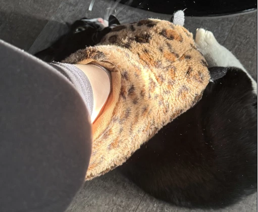 Sehr interessantes Foto. Katze tiefenemtspannt. Und nette “Pantöffelchen”. 😄