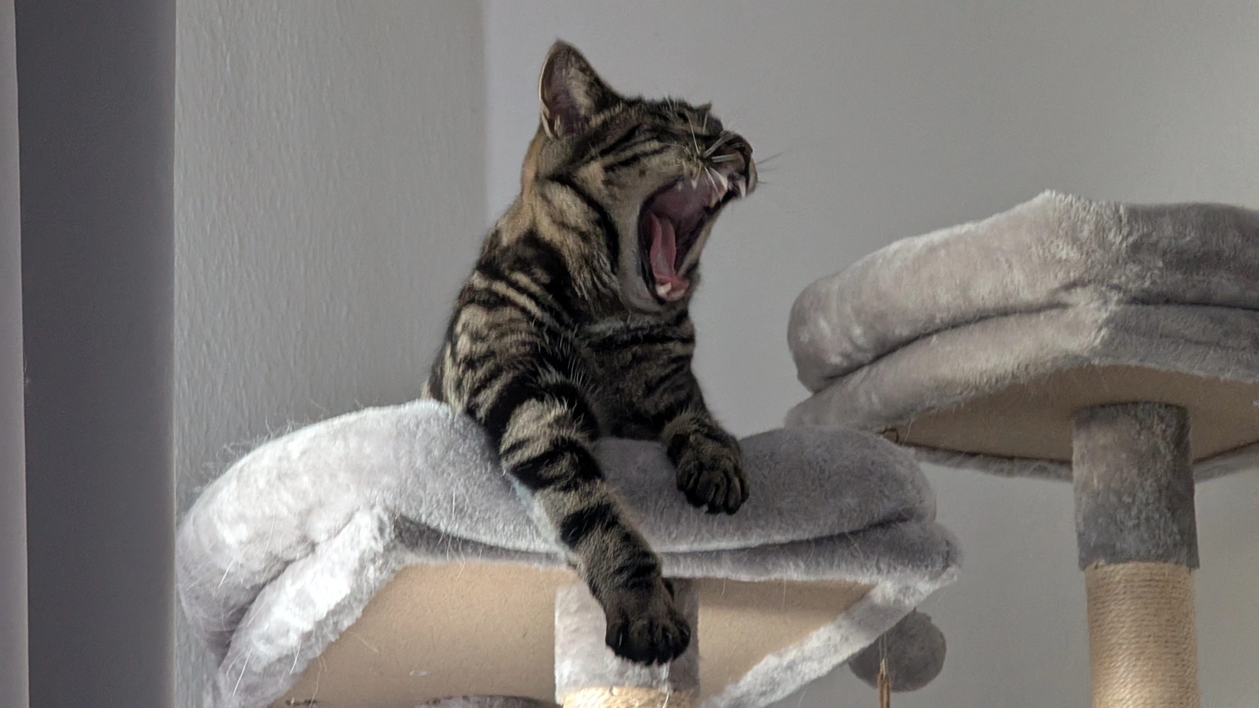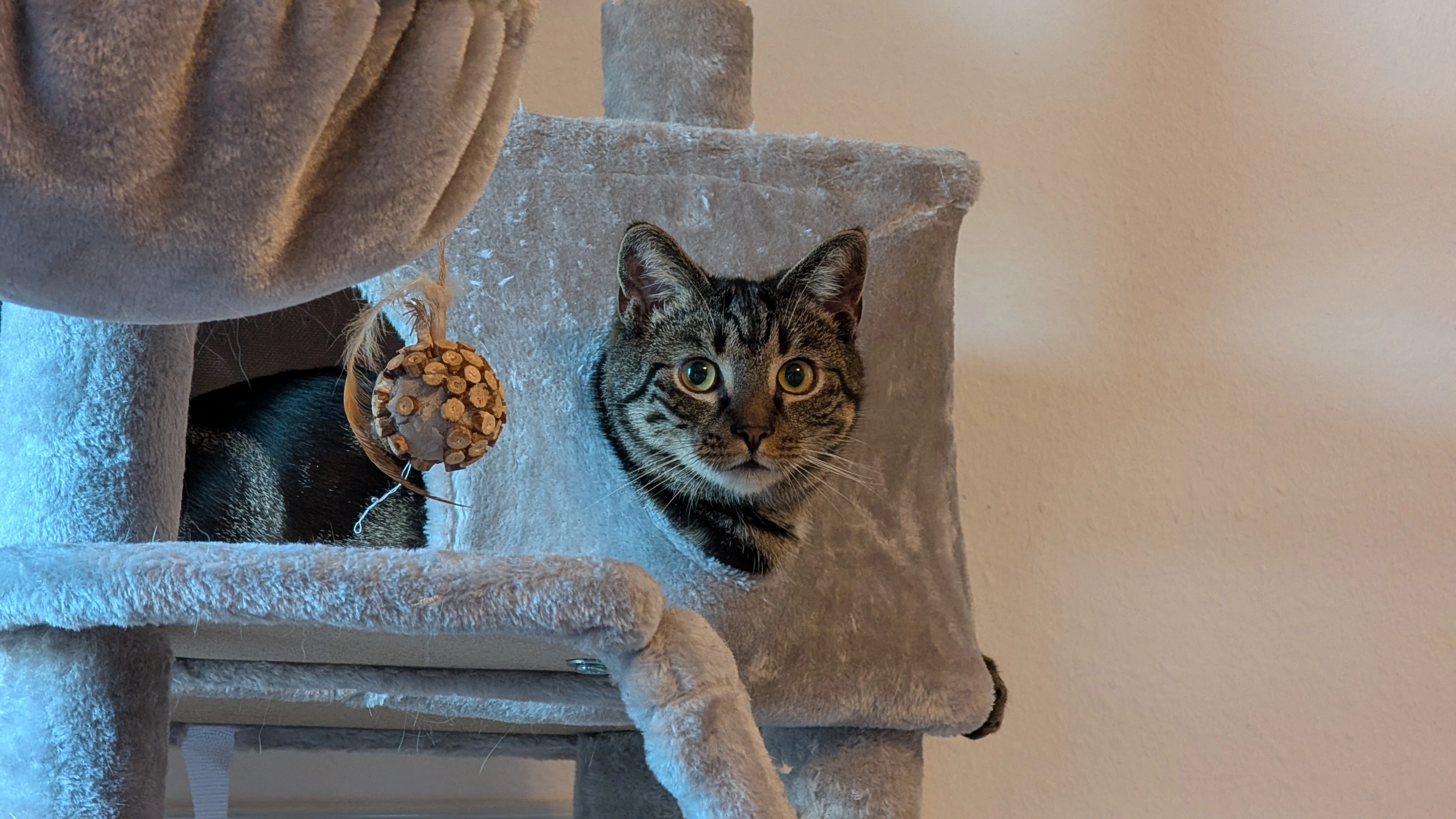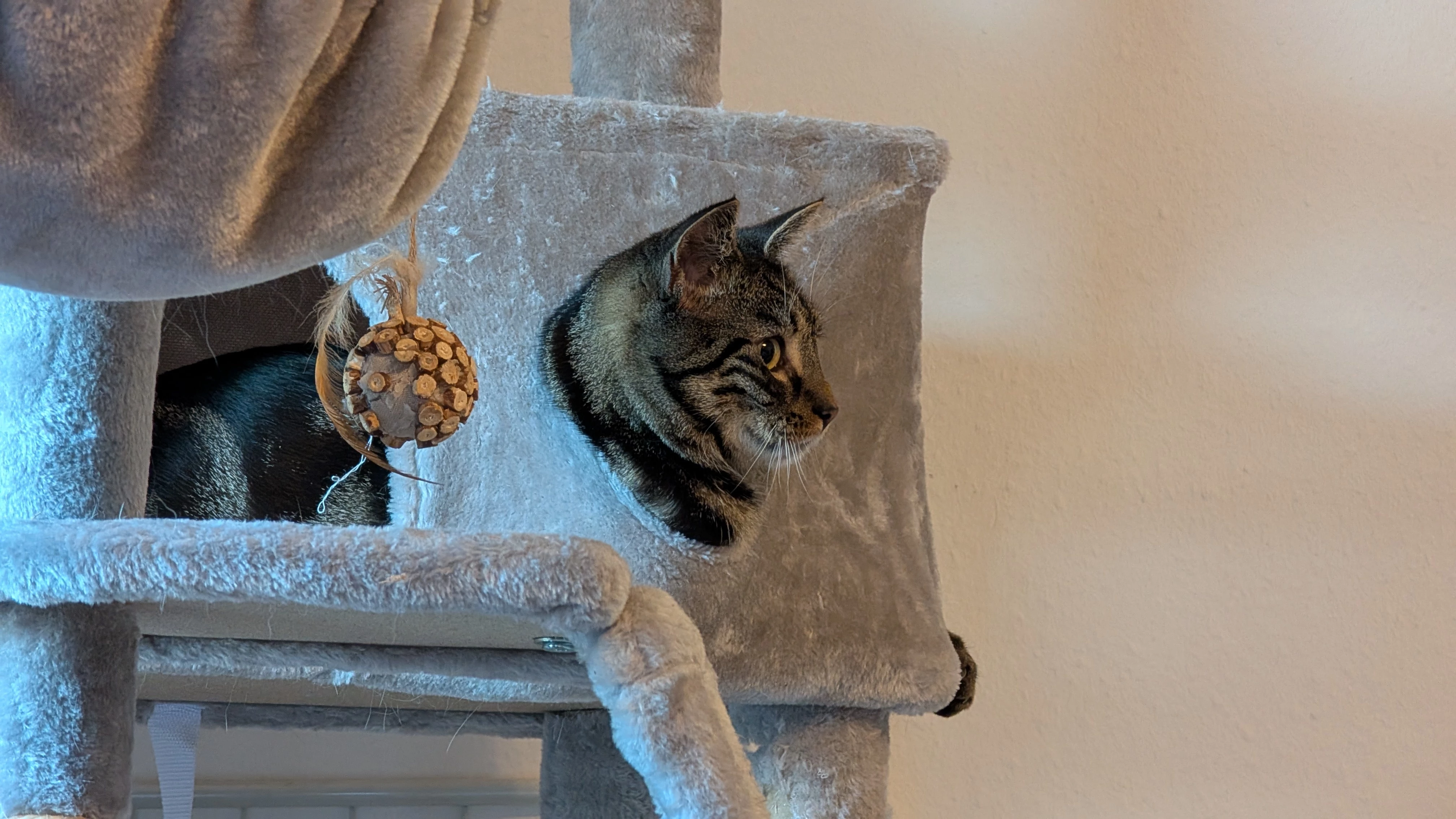 Frieda hat ein neues Koprfkissen 😂 Der Kratzbaum wird nun auch zweckentfremdet🙈