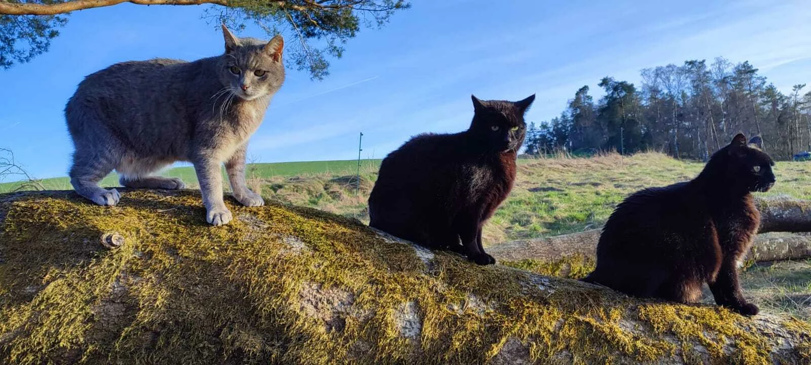 Das sind die 3 Brüder Dundee, Eddie und Struppi. Die sind hier geboren und inzwischen 15 Jahre alt. Die bekommen gutes Futter und die Tierärztin hat auch immer wieder mal was zu tun gehabt, aber die sind fit und gut drauf 🙂