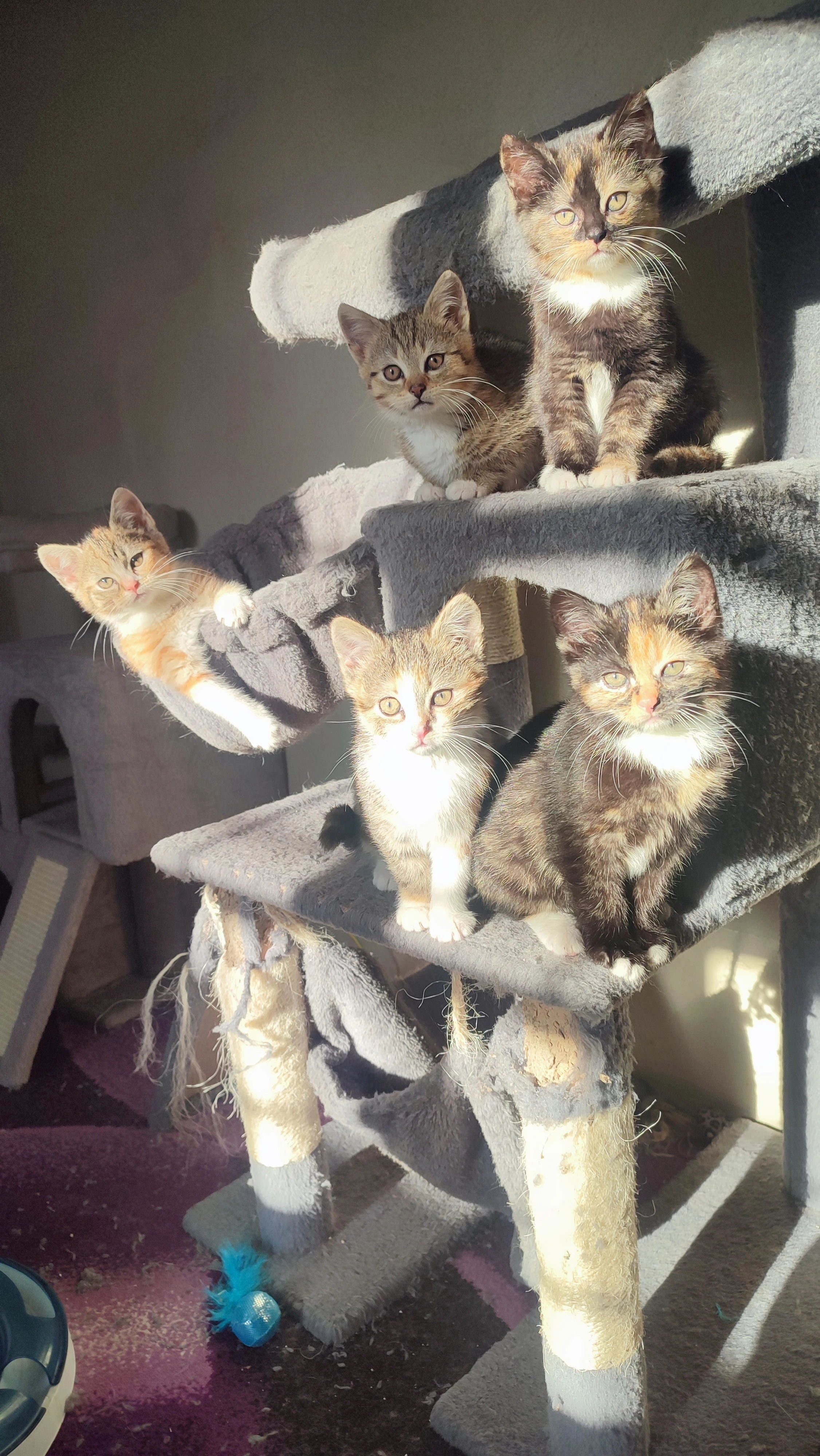 Habe eine trächtige Mieze vom Tierschutz bekommen zu meiner Pflegestelle. Die junge Mutti hat 5 prächtig Kätzchen geboren, die inzwischen 3 Monate alt sind. Für 4 von 6 (incl. Mutti) haben wir schon tolle Fürimmerzuhause in Aussicht. Heute bekomme ich Besuch von weiteren ernsthaft in Frage kommenden Interessenten, somit könnten die lieben Racker dann alle im Februar ausziehen.