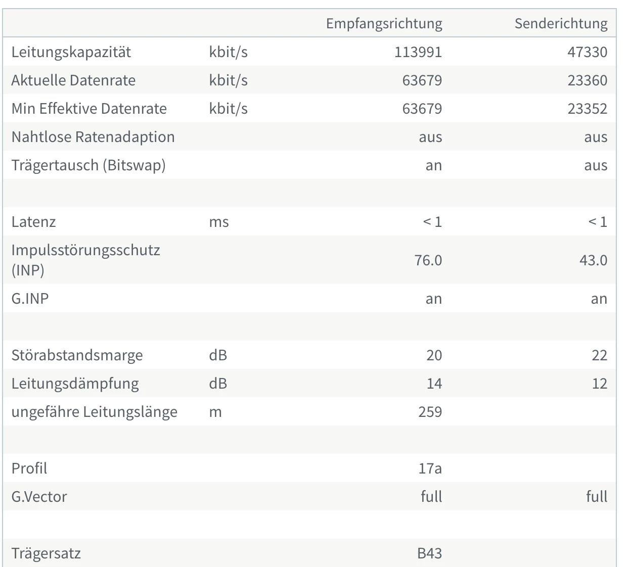 Als Ergänzung zu den Screenshots der Fritzbox wäre es schön, wenn Du go-dsl installieren könntest (https://github.com/janh/go-dsl , Binaries gibt es dort unter https://github.com/janh/go-dsl/releases) und einen Screenshot machen könntest, dabei bitte go-dsl mit dem folgenden Befehl ausführen: