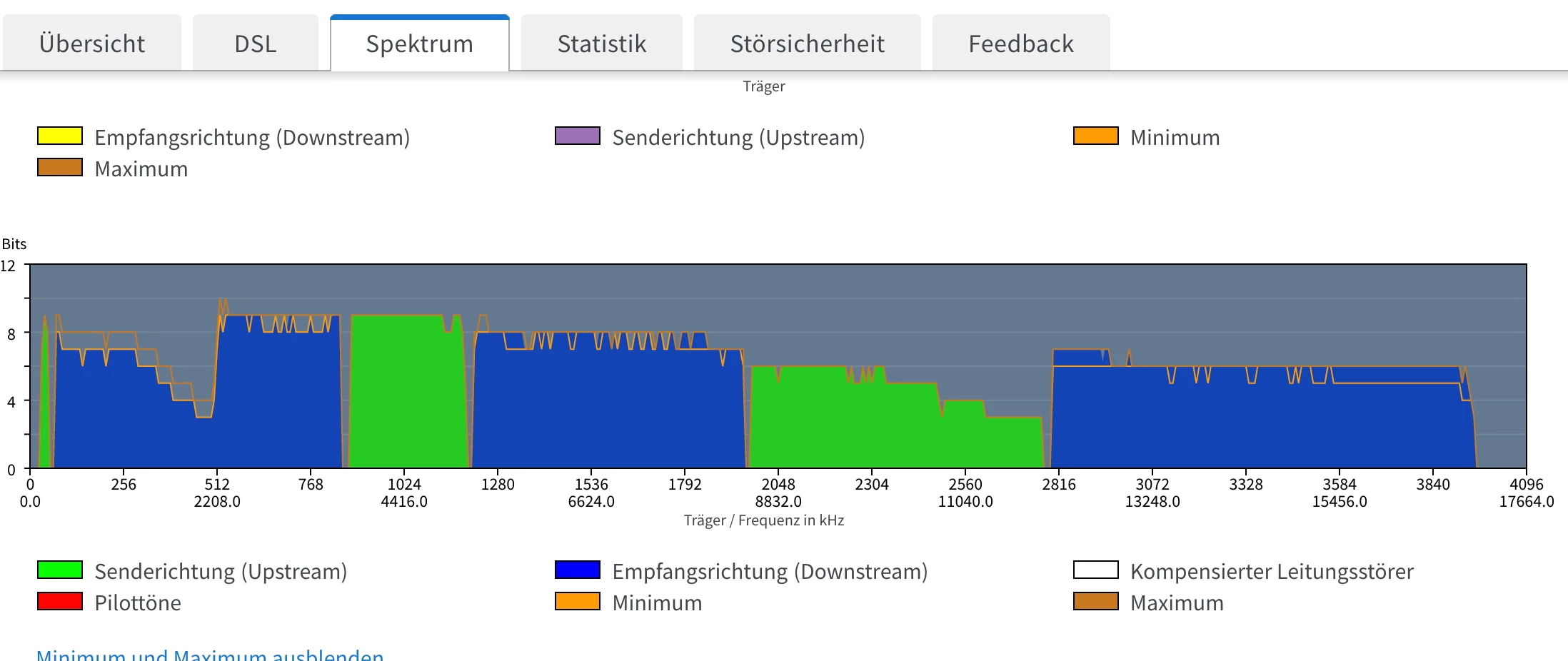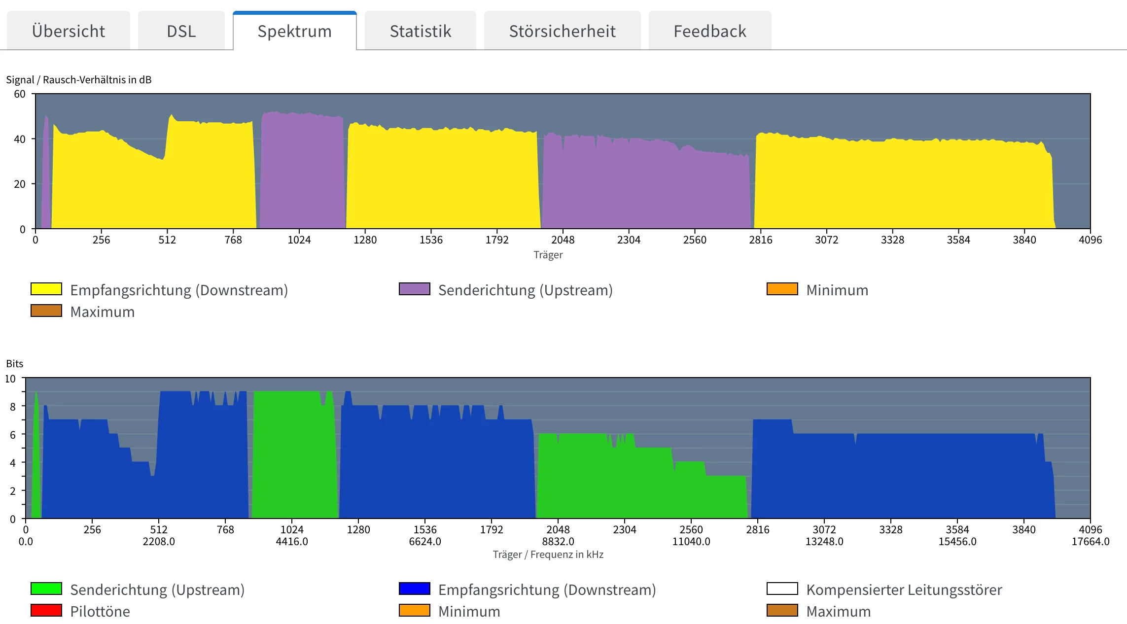 Mach doch noch mal einen Screenshot vom Spektrum Tab, aber klicke auf den Link untern (“Minimum und Maximum anzeigen” oder so aehnlich). Auf den ersten Blick sieht der Link sauber aus, aber das mag eine sich aendern wenn die Primetime anfaengt. Wann hast Du denn ueblicherweise Probleme mit den Spielen?