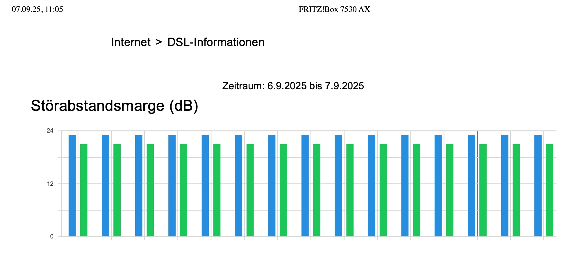 Danke. Also ich wuerde gerne auch noch den Signal/Rausch Verhaeltnis Graphen sehen. Am besten einmal zu einer Zeit in deralles gltt laeuft und einmal zu einer Zeit in der es hakt.