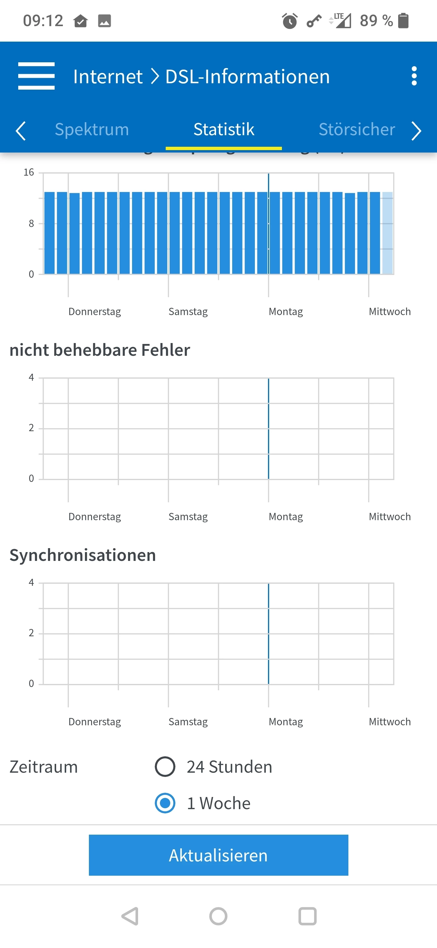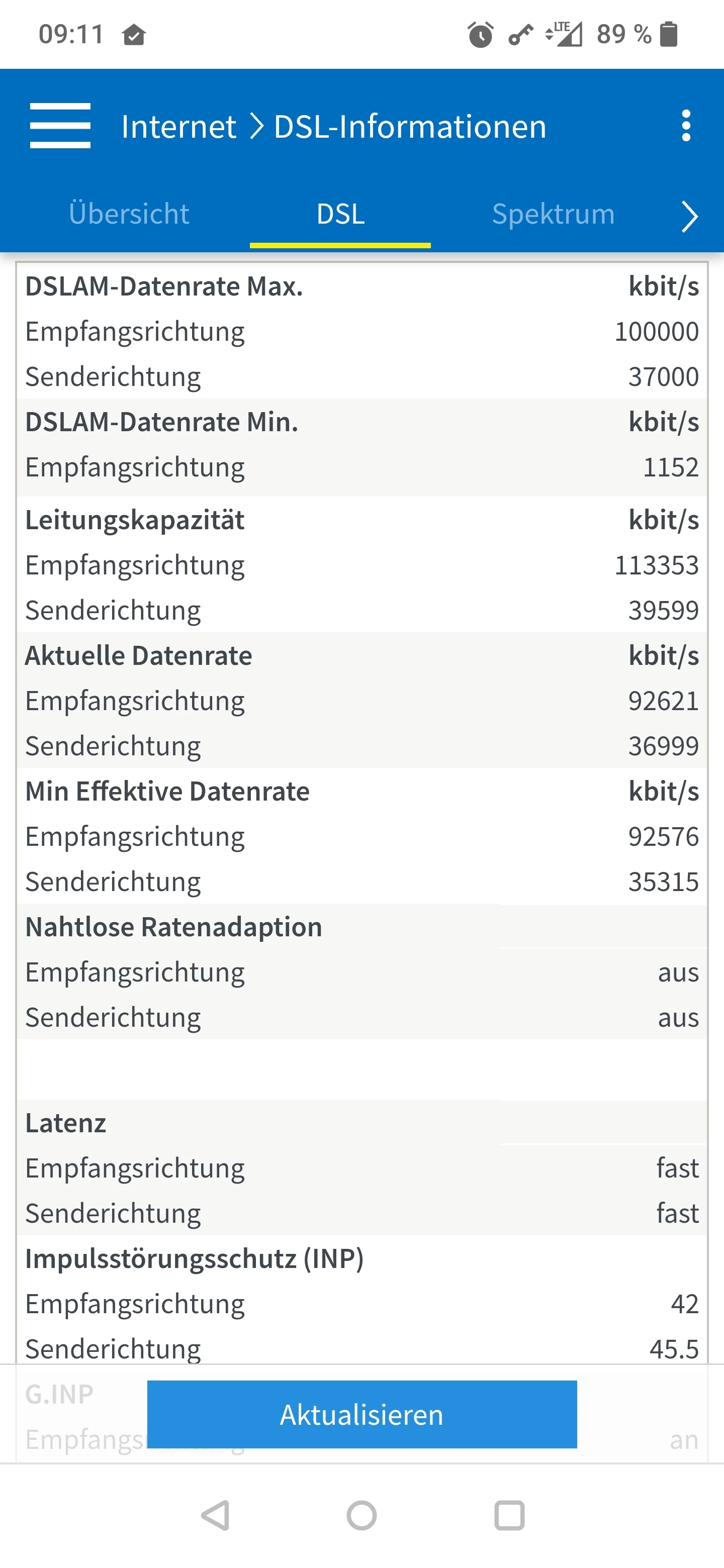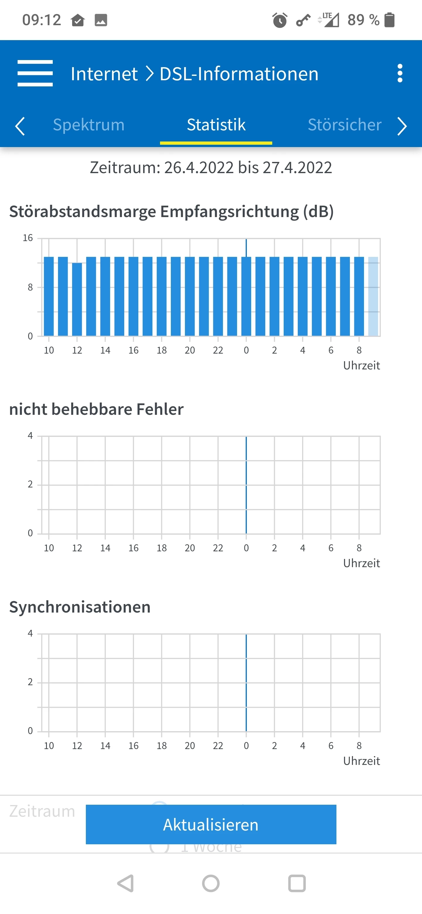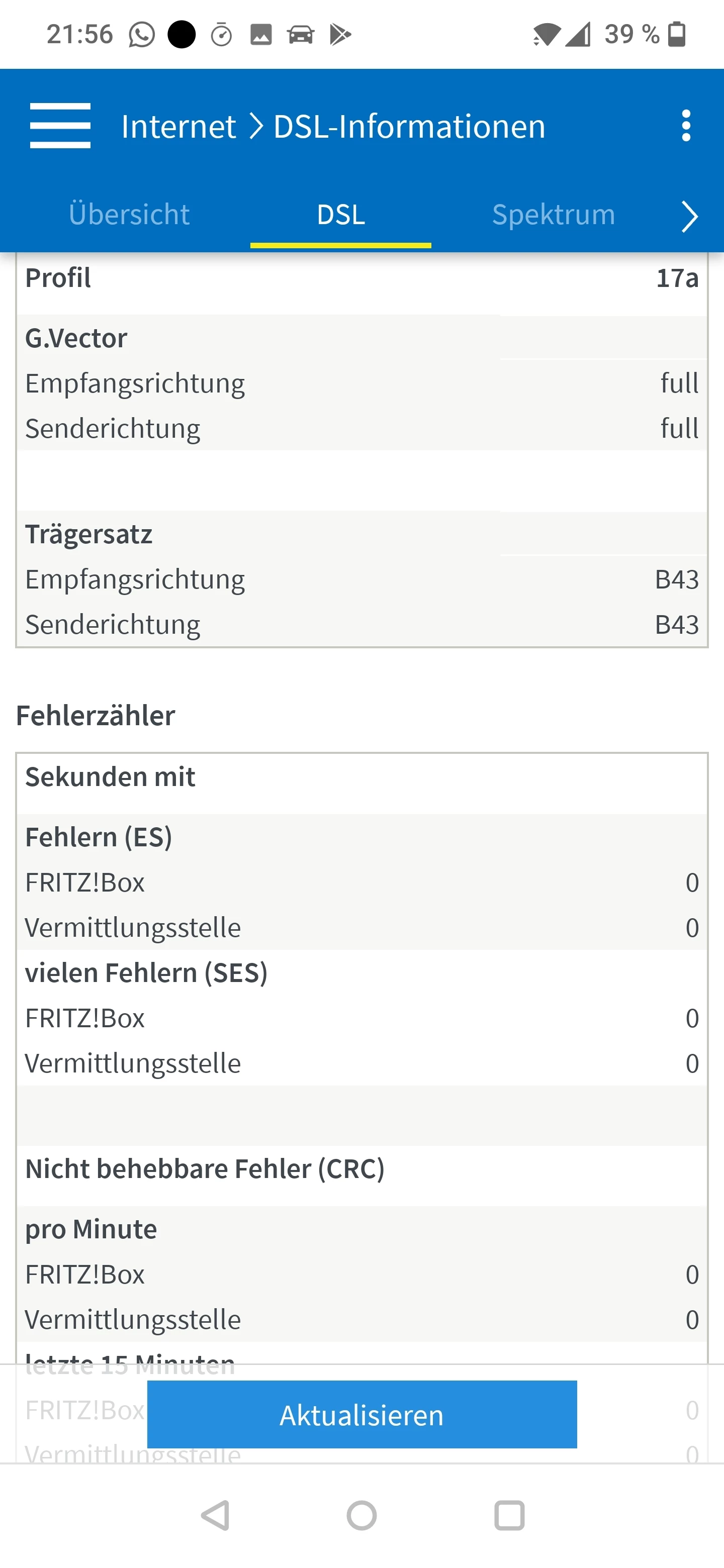 Es sind keinerlei Syncabbrüche oder CRC / ES Fehler vorhanden, auch keine unkorrigierten DTU Fehler. Lediglich eine kleine Anzahl von korrigierten DTU Fehlern