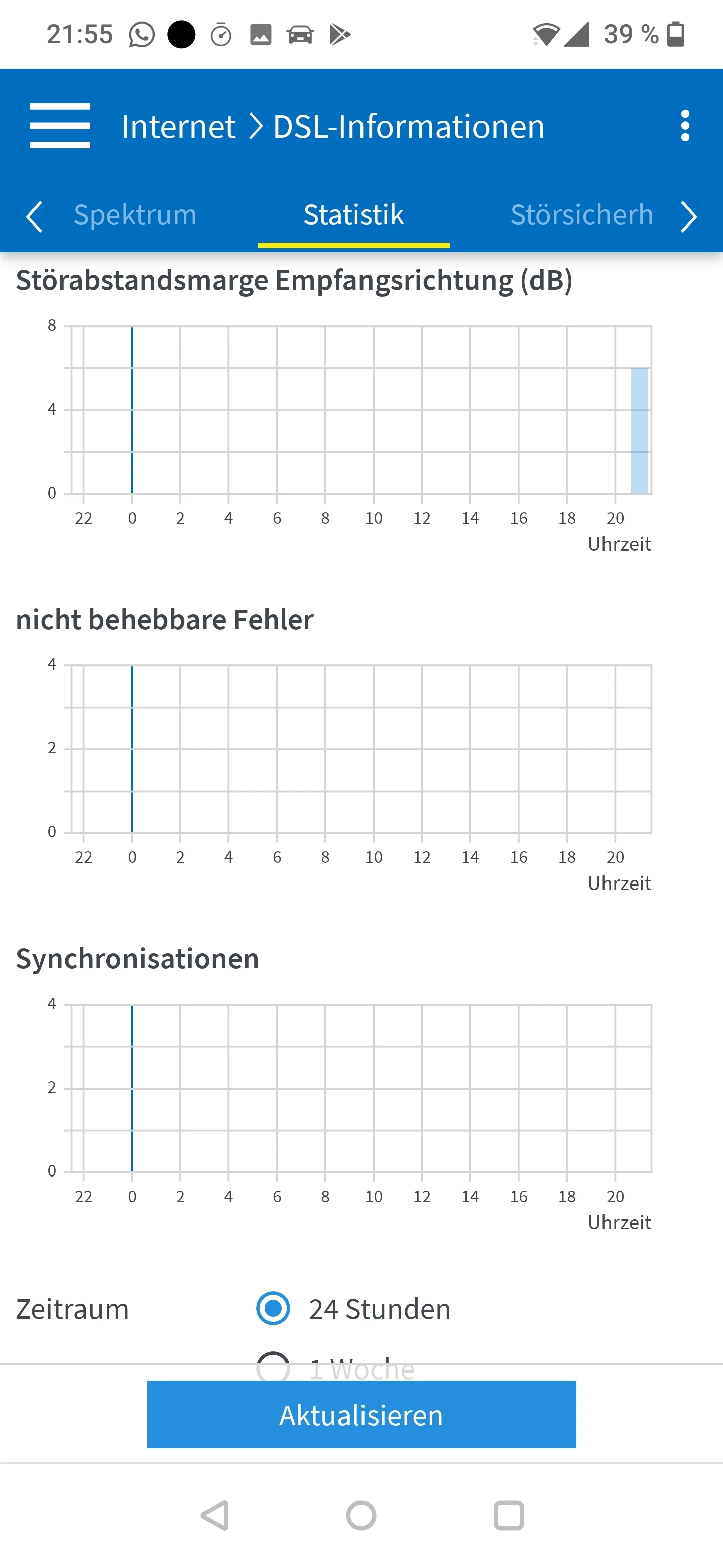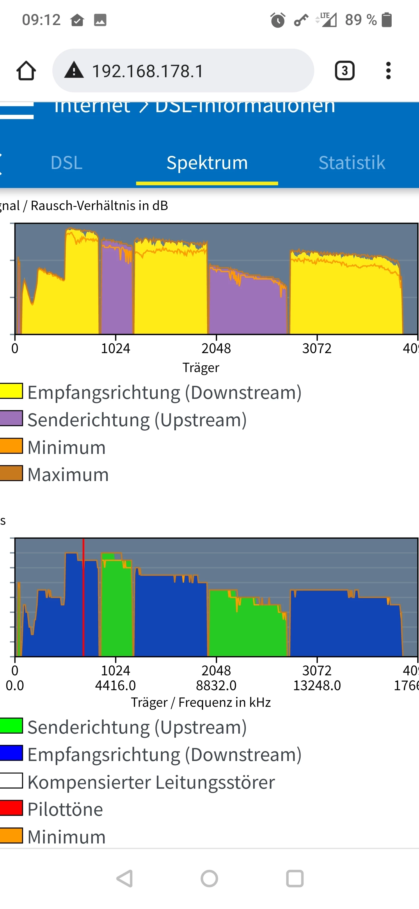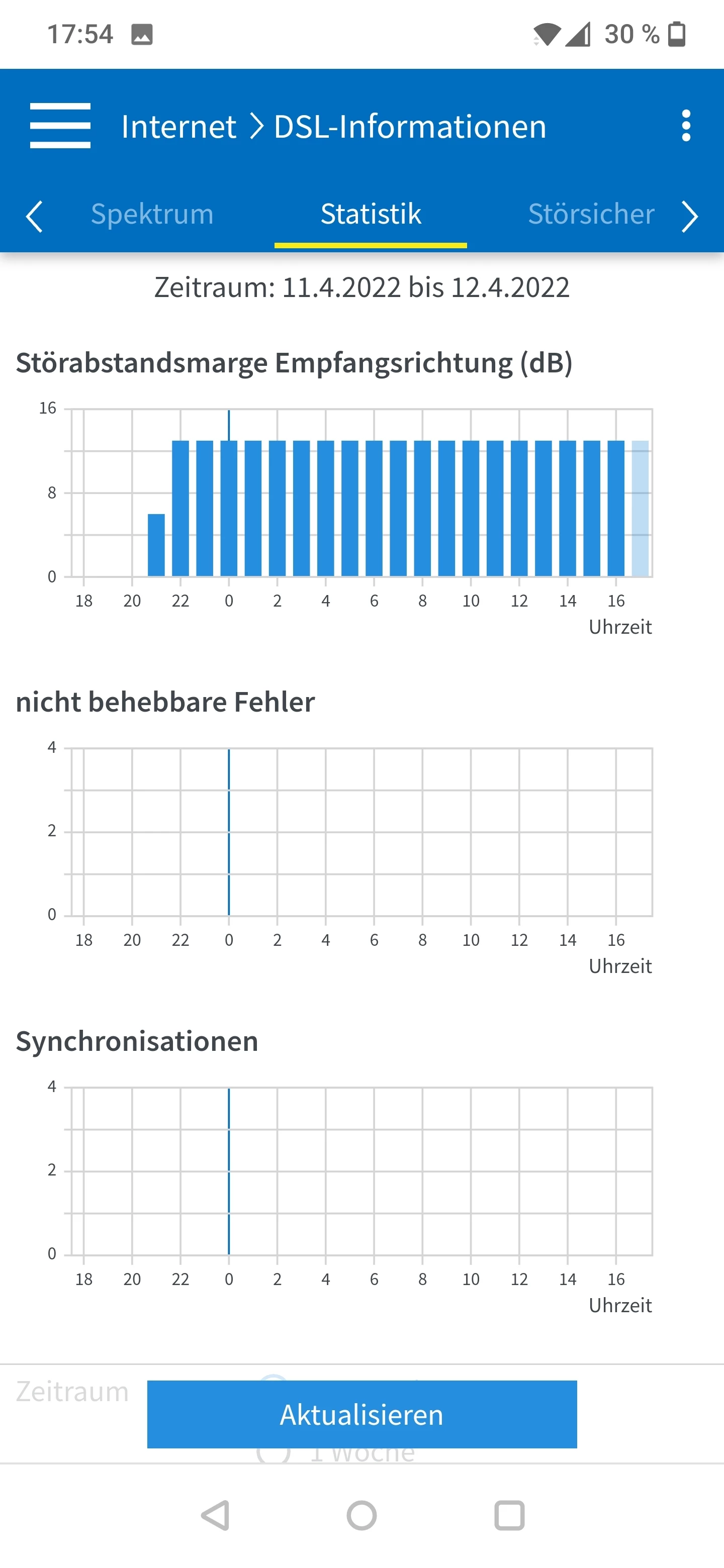 Lass das mal so 14 Tage durchlaufen. Die DTU-Fehler sind auch äußerst gering. Ich denke, dass es an der Schirmung/Erdung lag. Da war irgendeine Brummschleife/Erdschleife drauf. Und die Leitungslänge bzw. der SNR schwankt ohnehin bei jeder Neusynchronisation je nach Temperatur/Tageszeit/Netzauslastung.