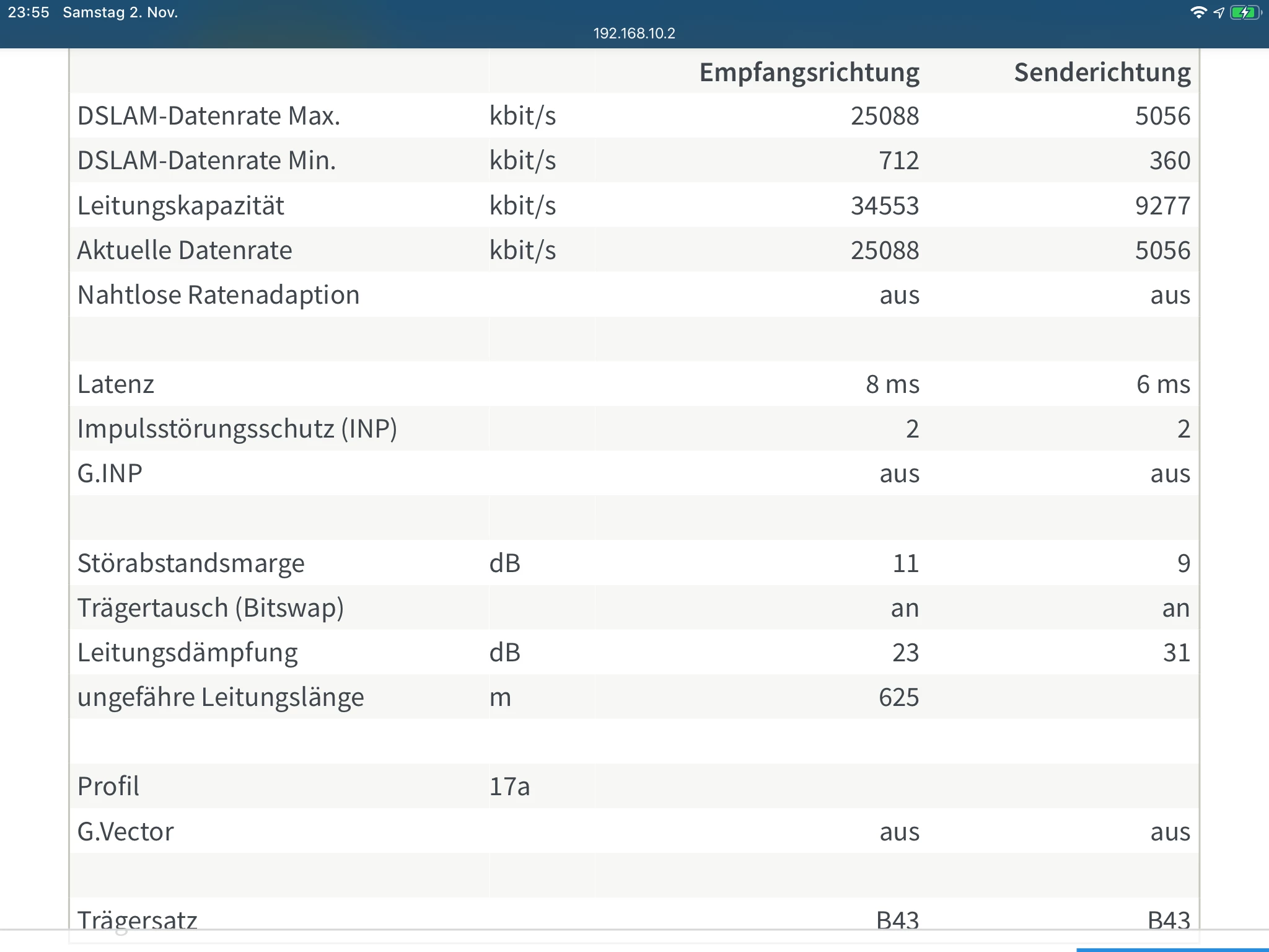 Und anders als @Denner vermutet, erfolgt eine Drosselung der Geschwindigkeit bei aktuellen Anschlüssen nicht mehr direkt am Port sondern weiter hinten in der Infrastruktur - aktuelle Anschlüsse werden zwischen Router und DSLAM immer mit dem maximal möglichen Wert synchronisieren.
