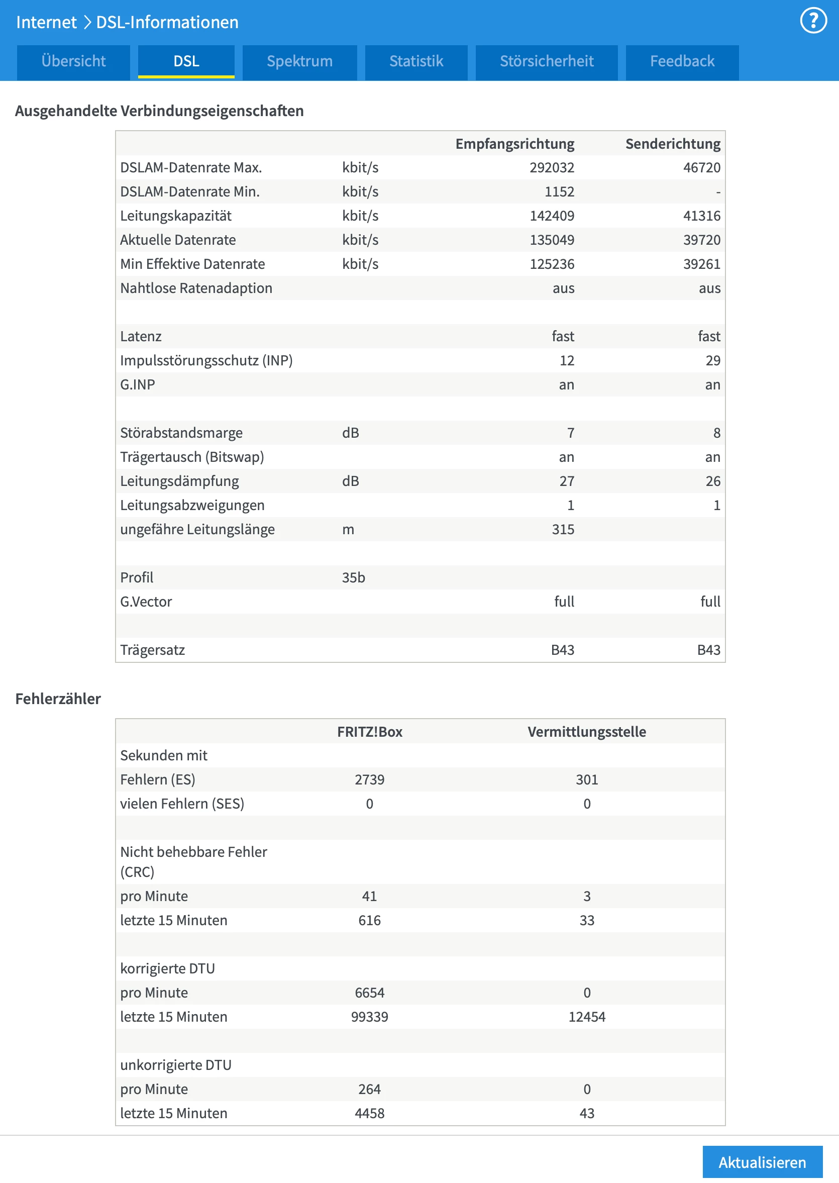 Dann Screenshot von den dsl werten.