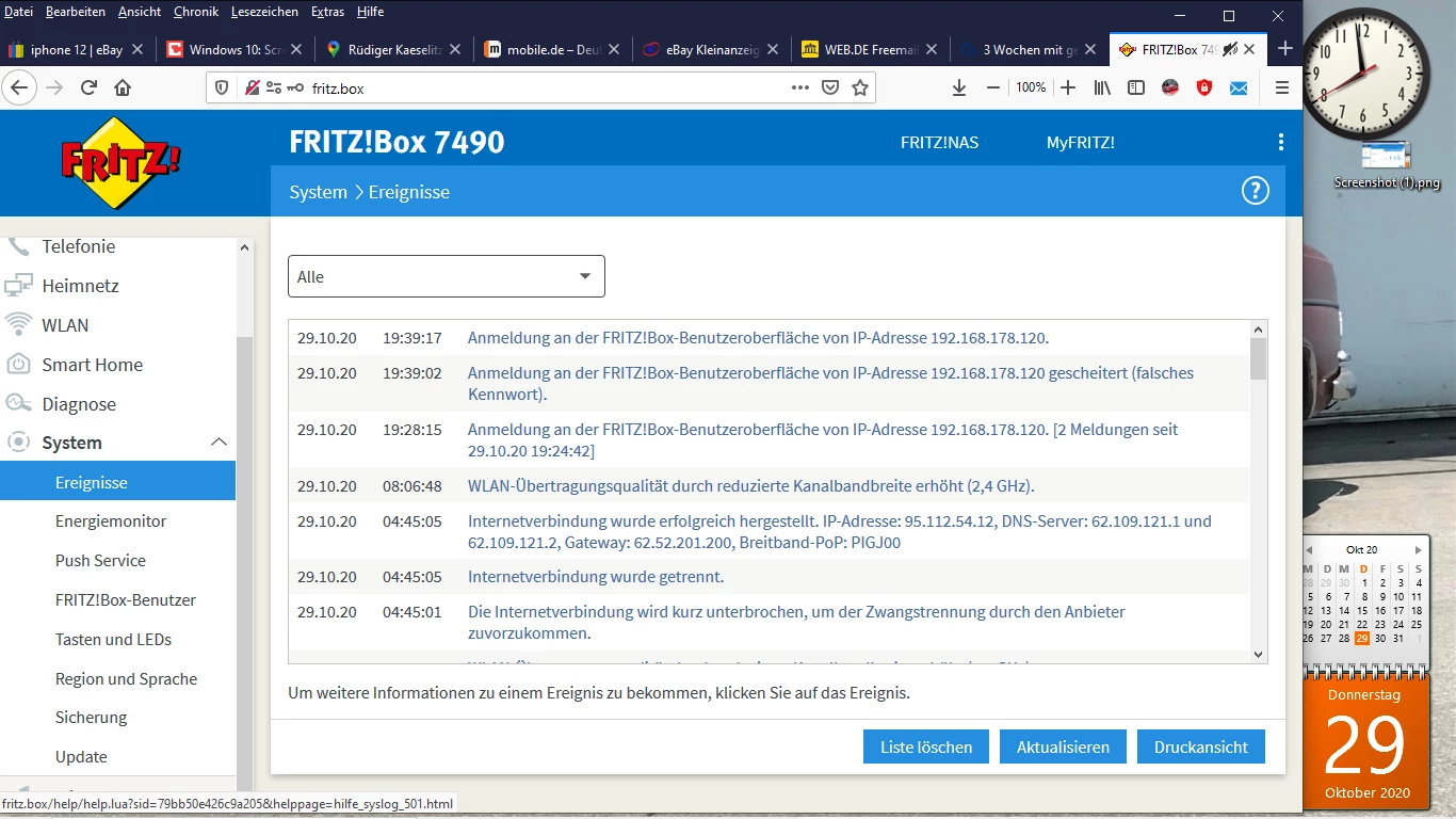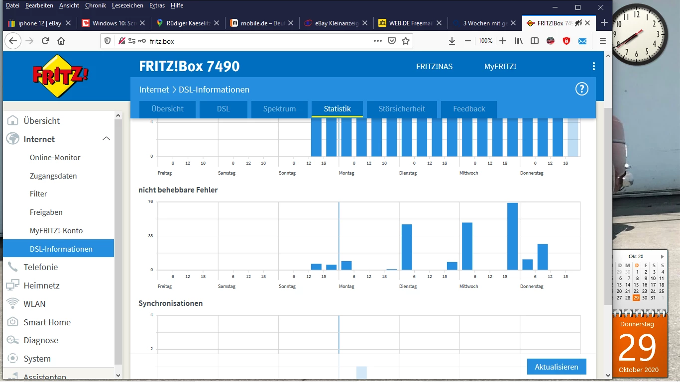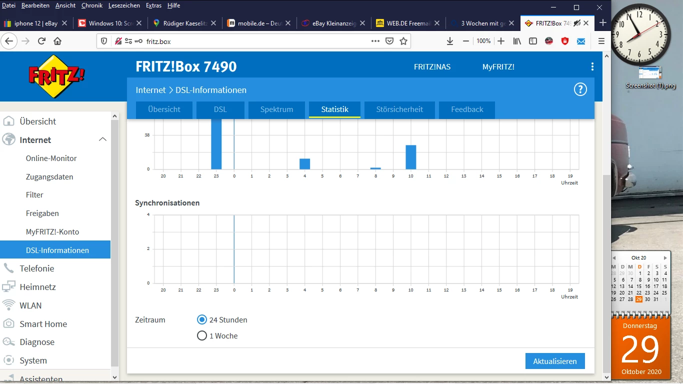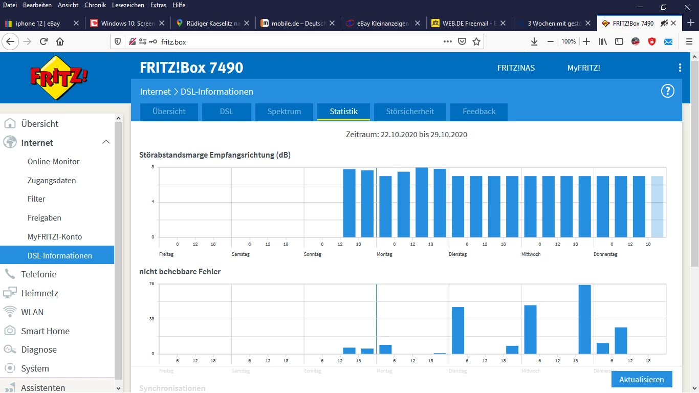 Könntest bitte mal einen Screenshot von Internet/DSL Informationen/Statistik einstellen. (Zeitraum 1 Woche)