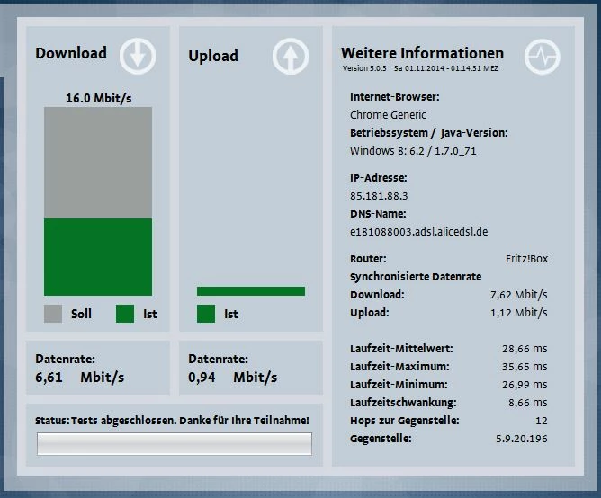 @Lichtraum Nun sind es 11,1Mbit/s