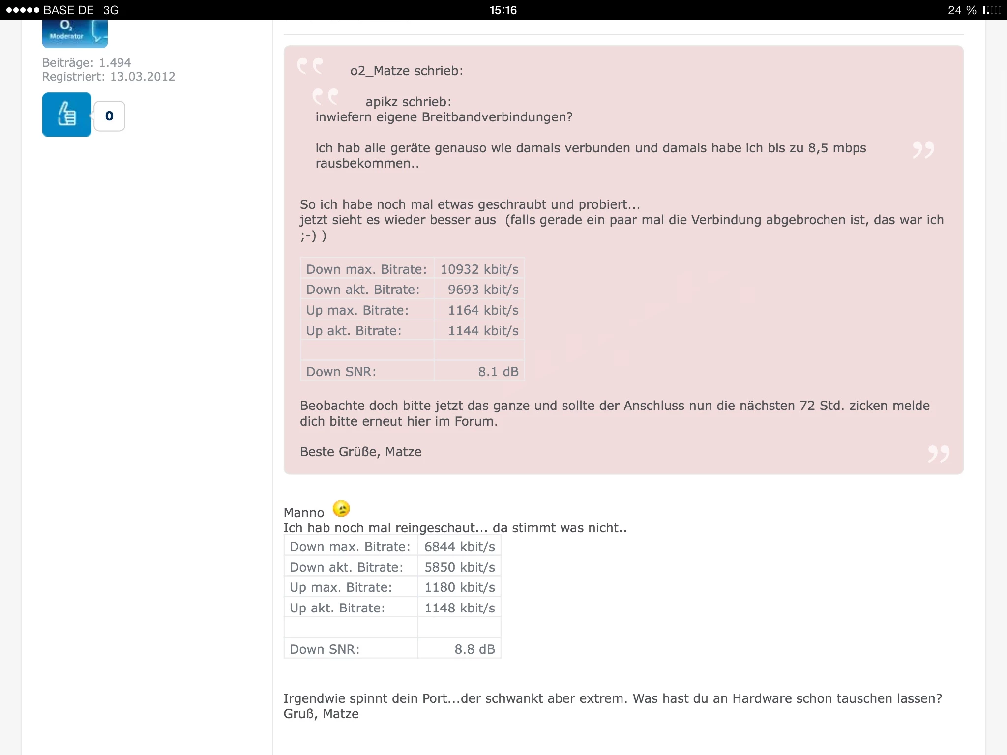 Kann Sich bitte erneut jemand meine Leitung anschauen? Liege aktuell nur bei 2,3 Mbit. Danke