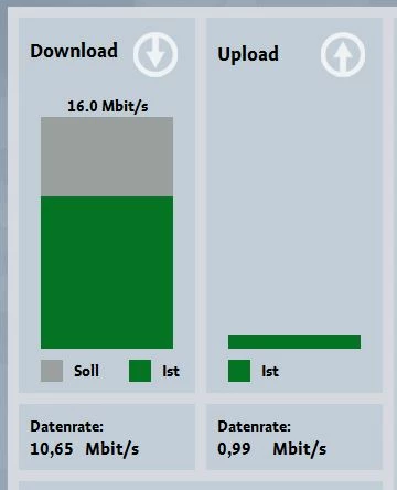 eine Störung liegt aktuell nicht vor und die Leitung ist, soweit ich sehe online. Ich habe den Port nochmal zurückgesetzt, da nur etwa 5 Mbit durchwollten, nun sind wir wieder etwa bei 10.