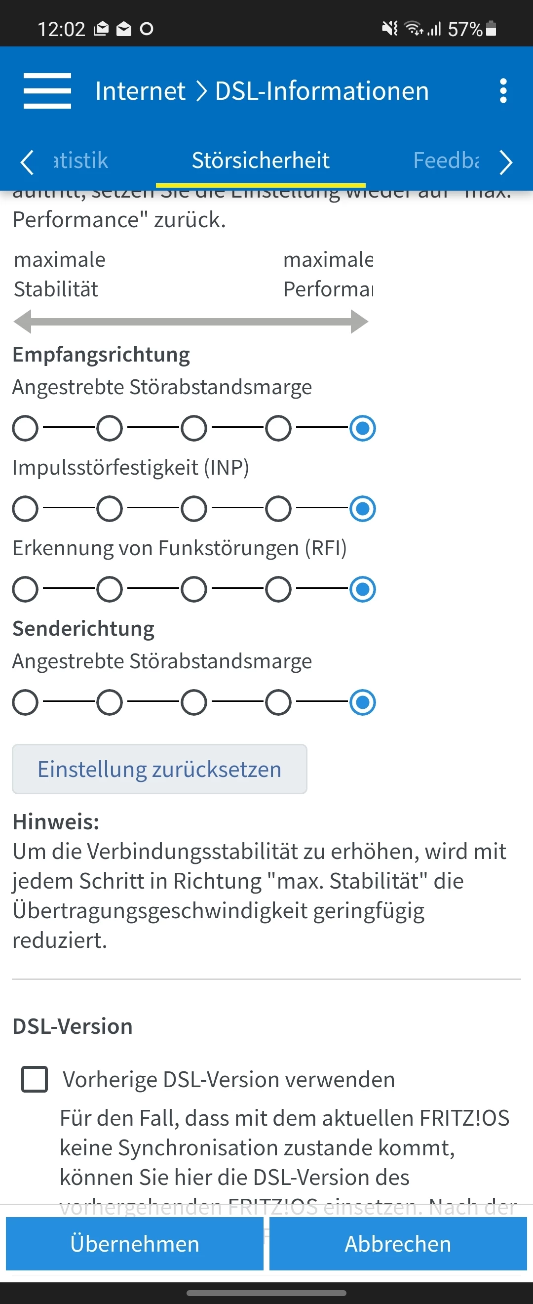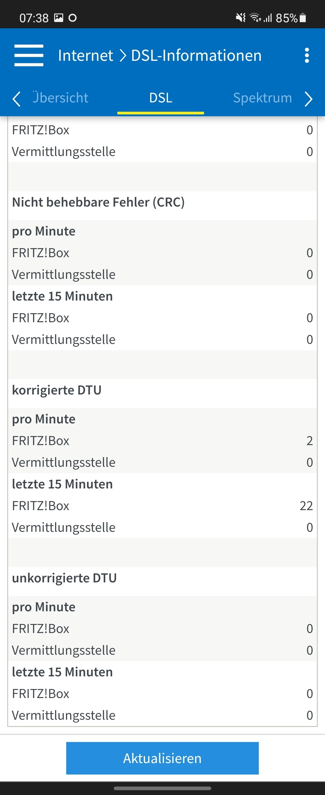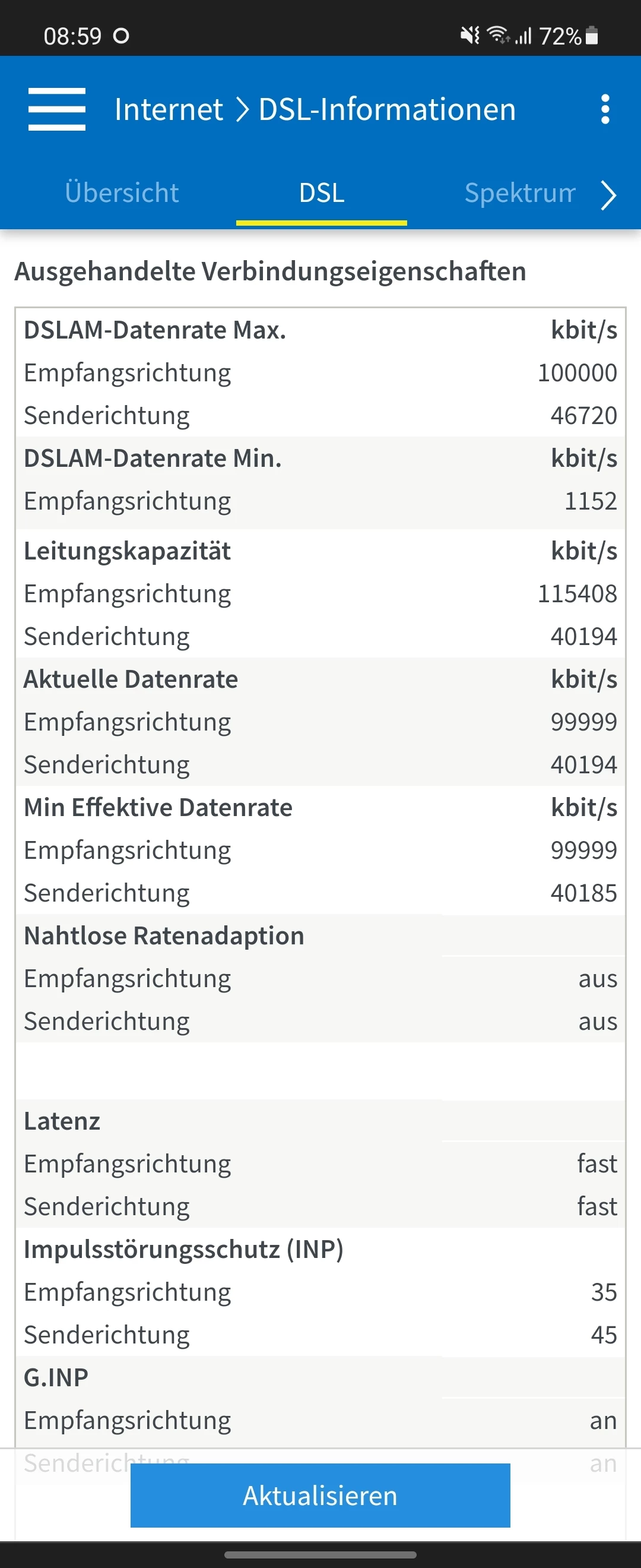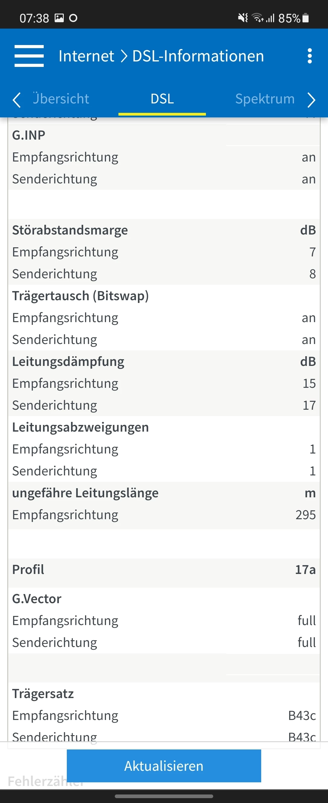 @Sobek Poste dann bitte einen Screenshot von deinen Leitungswerten. Internet/DSL Informationen/ DSL inkl. möglicher DTU Fehler.