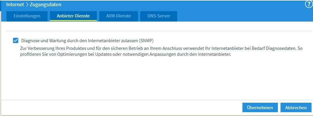 Diagnose und Wartung durch den Internetanbieter zulassen (SNMP)