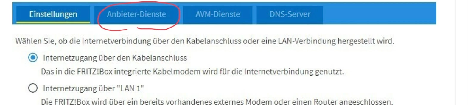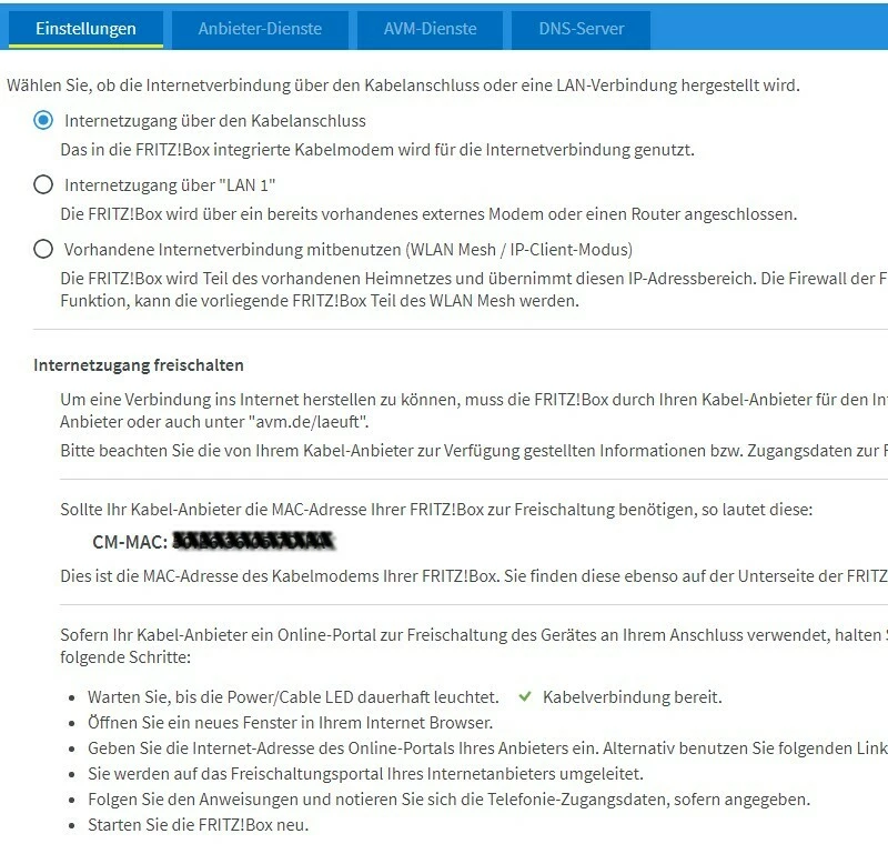 Und DSL Anschluss hat anscheinend andere Einstellmögl. als Kabelanschluss