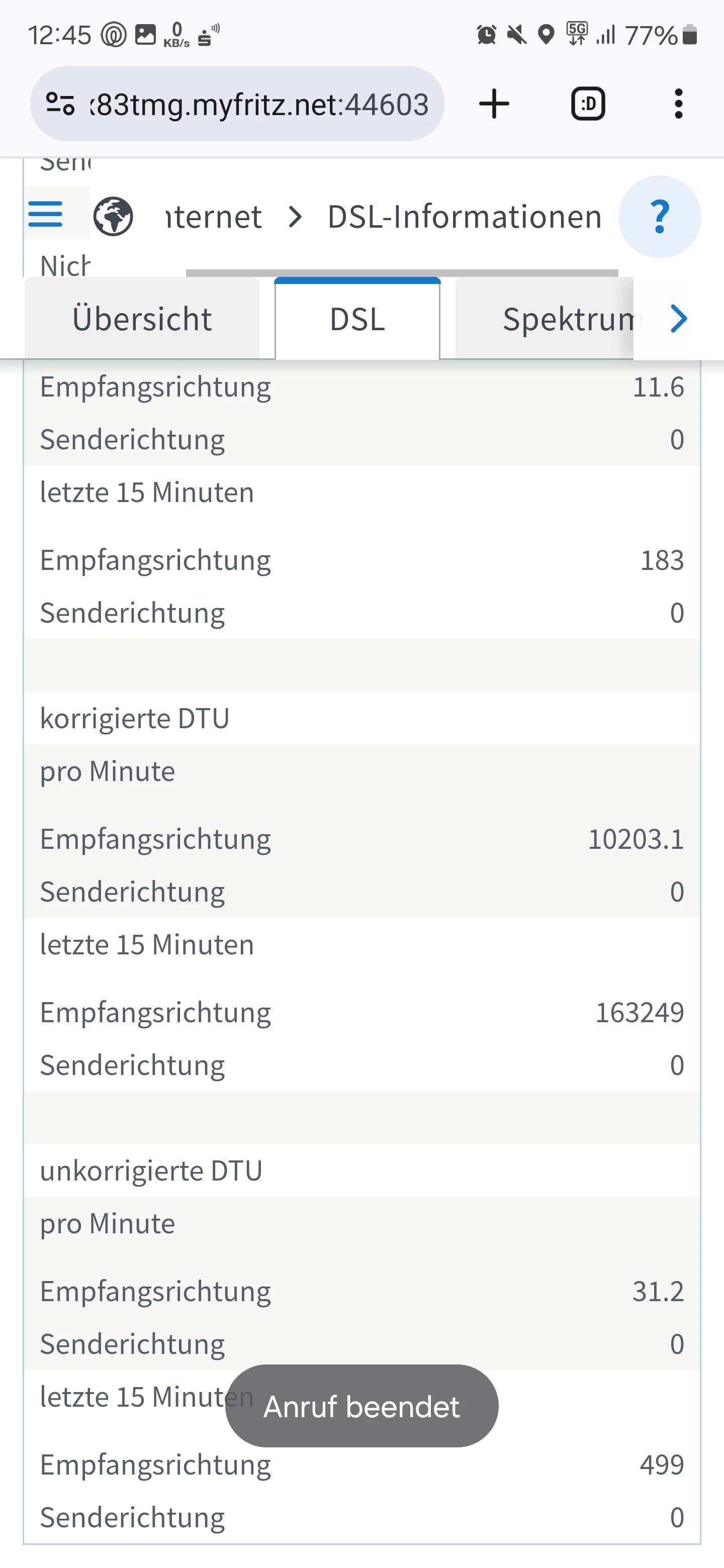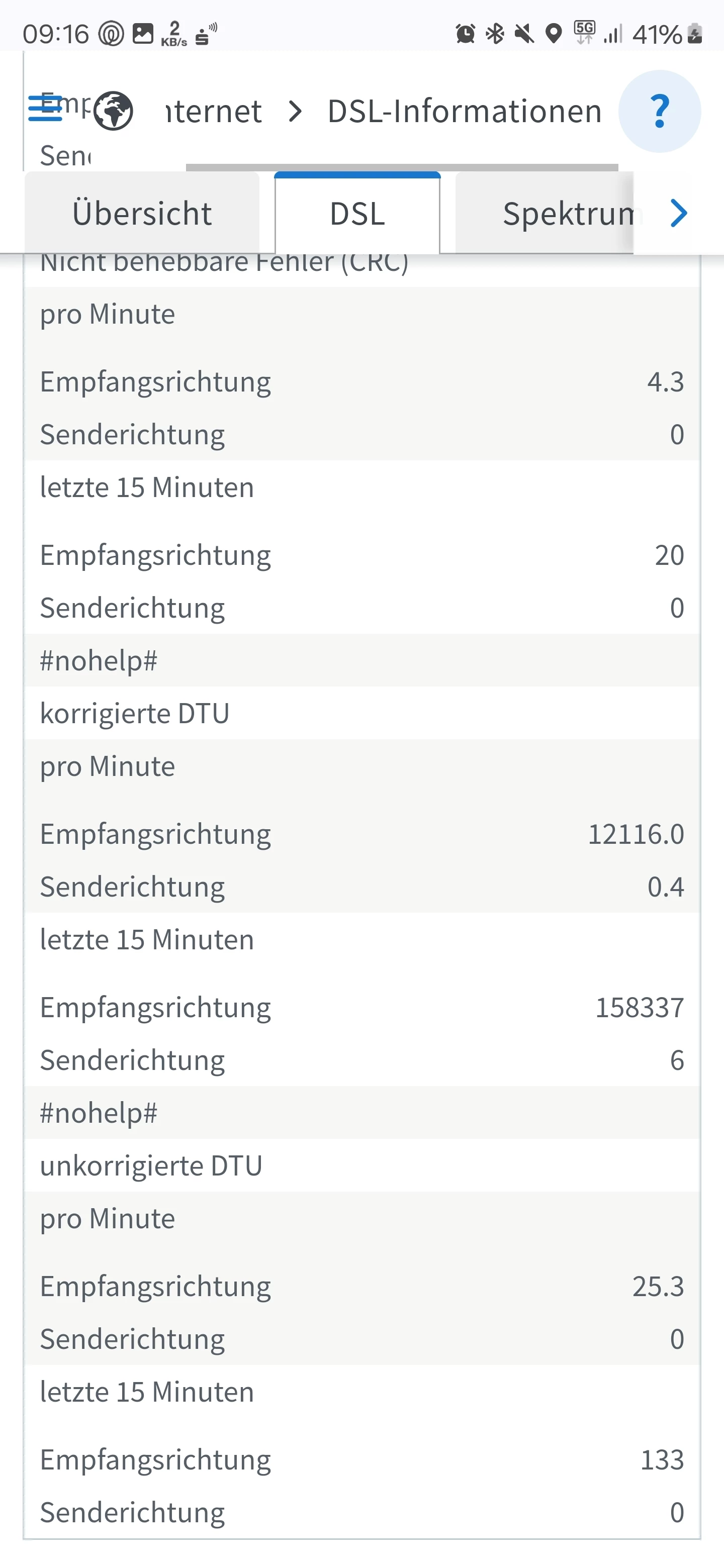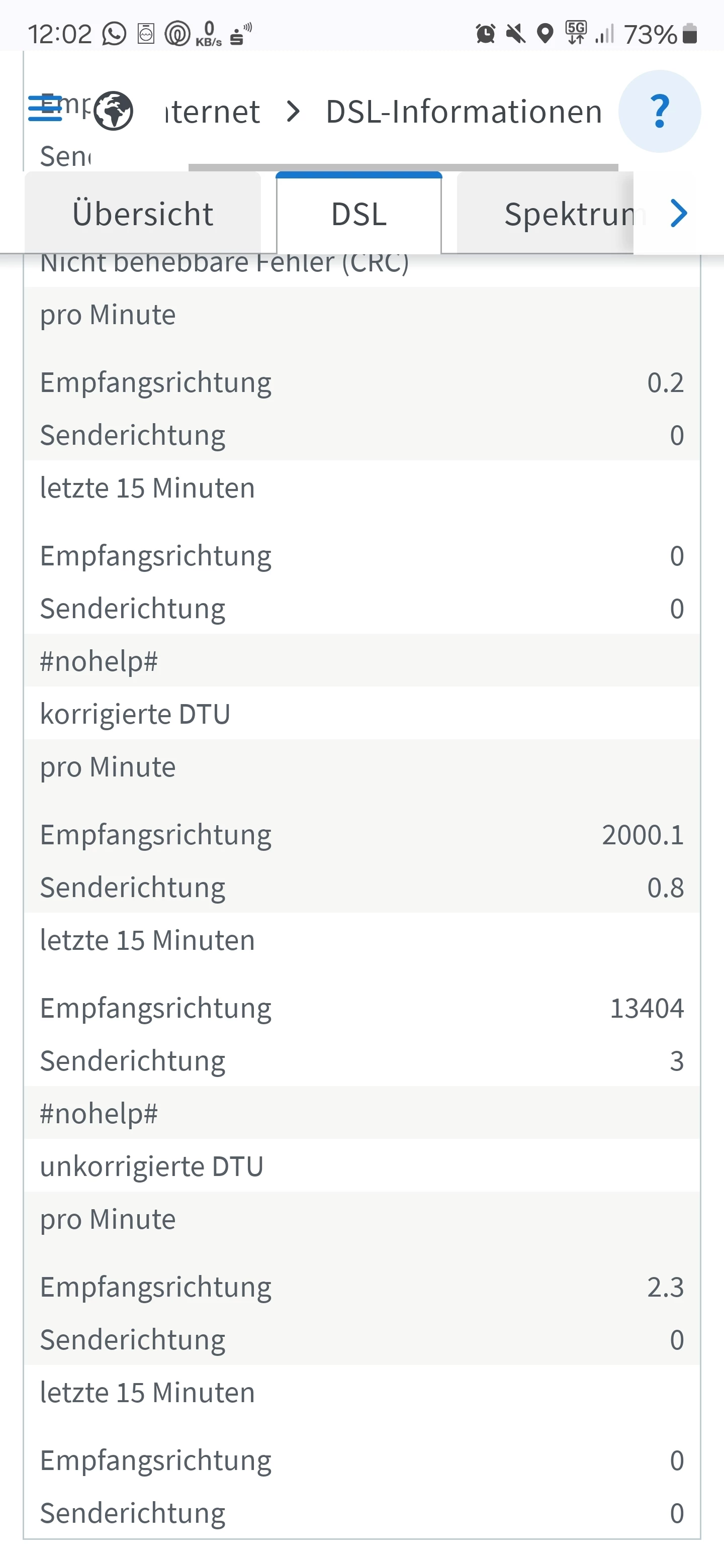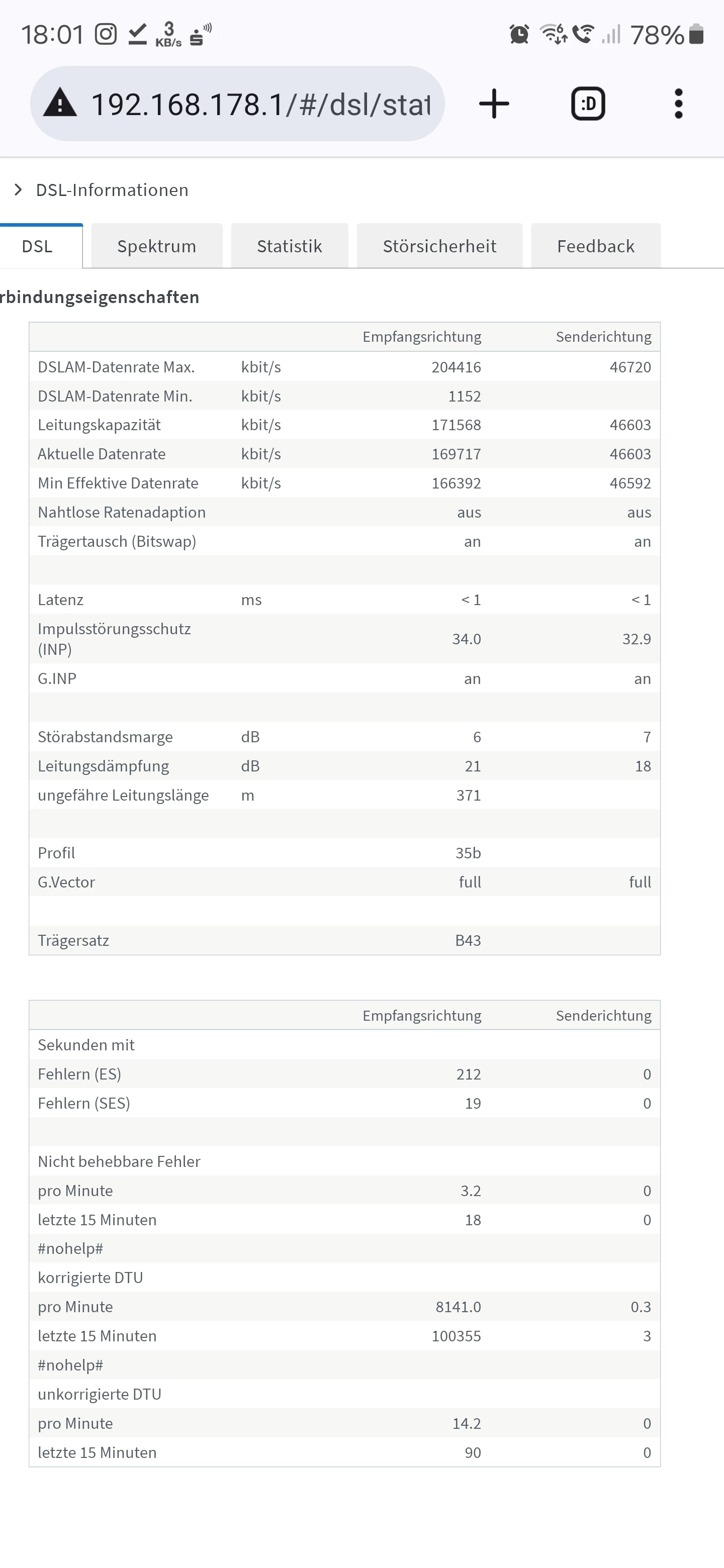 Die Leitung läuft noch stabil ,leider hat mich ASSIA schon wieder etwas runtergestuft, die DTU Fehler sind seit einer Woche wieder bei 4000.