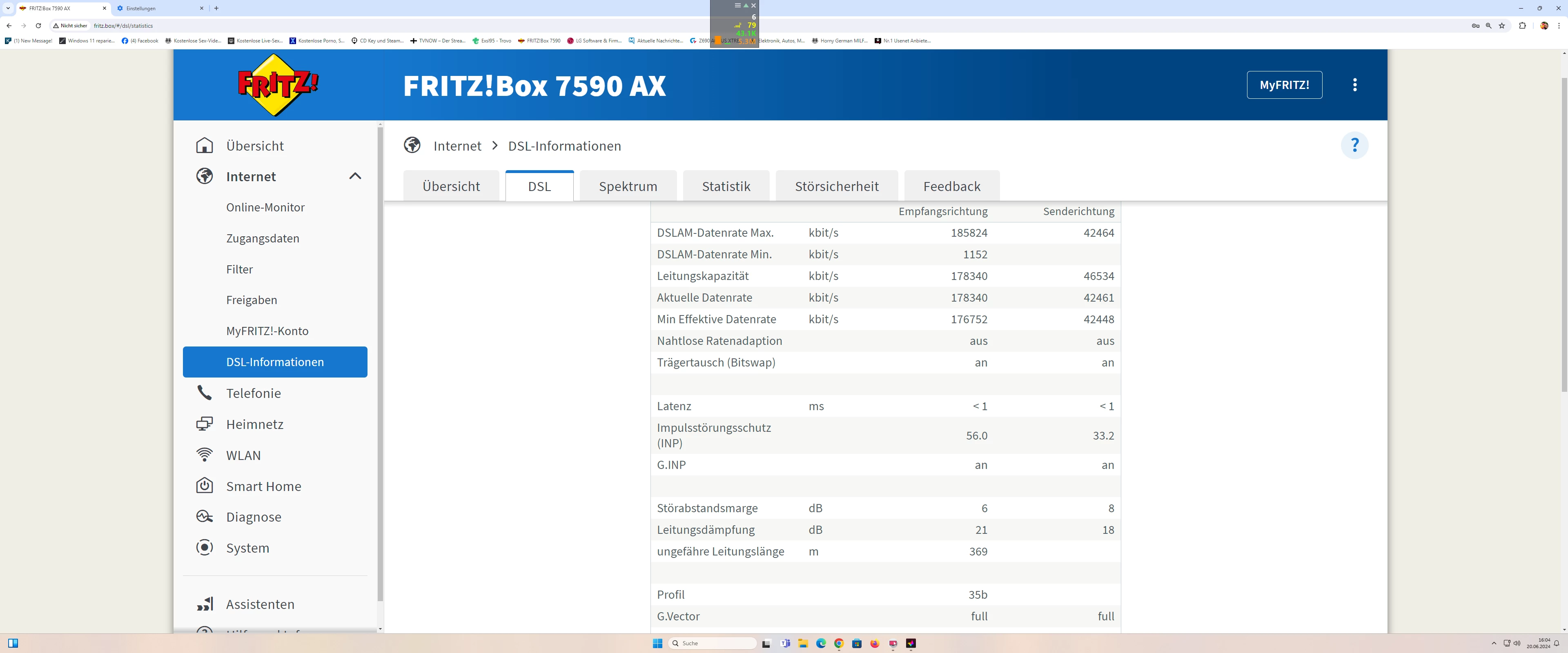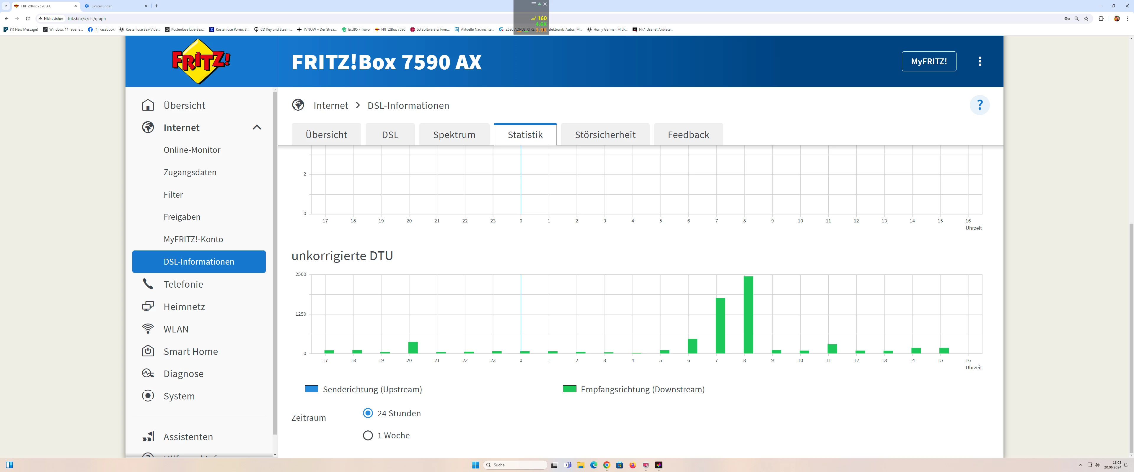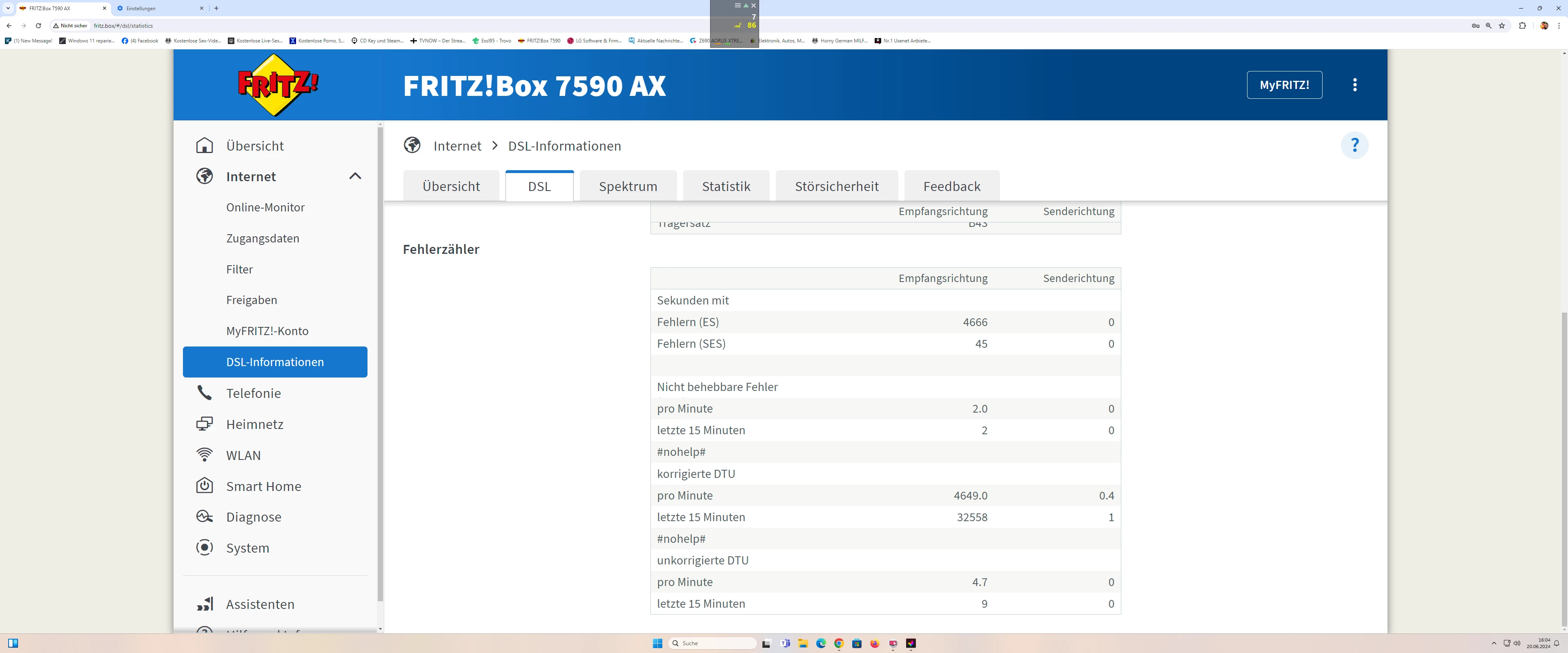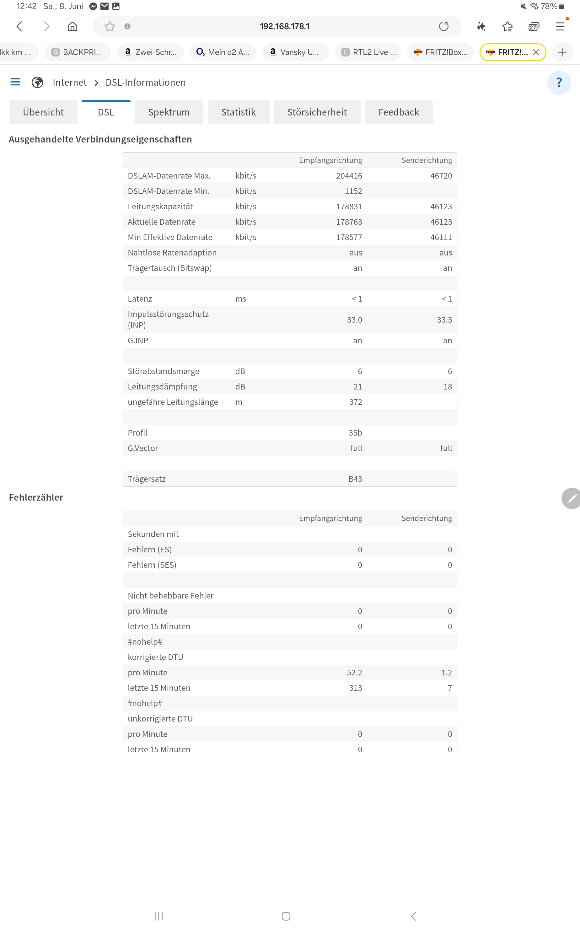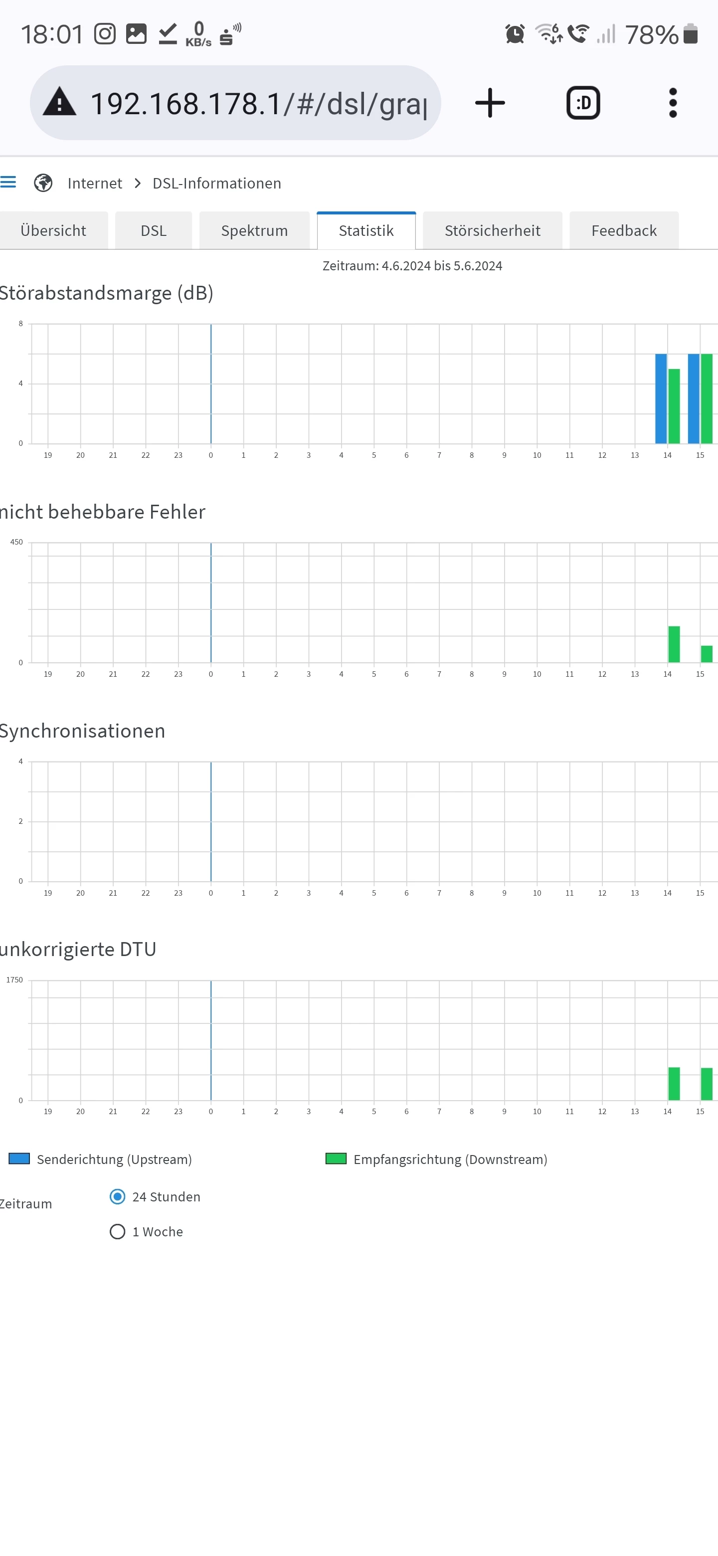 Die Leitung läuft noch stabil ,leider hat mich ASSIA schon wieder etwas runtergestuft, die DTU Fehler sind seit einer Woche wieder bei 4000.