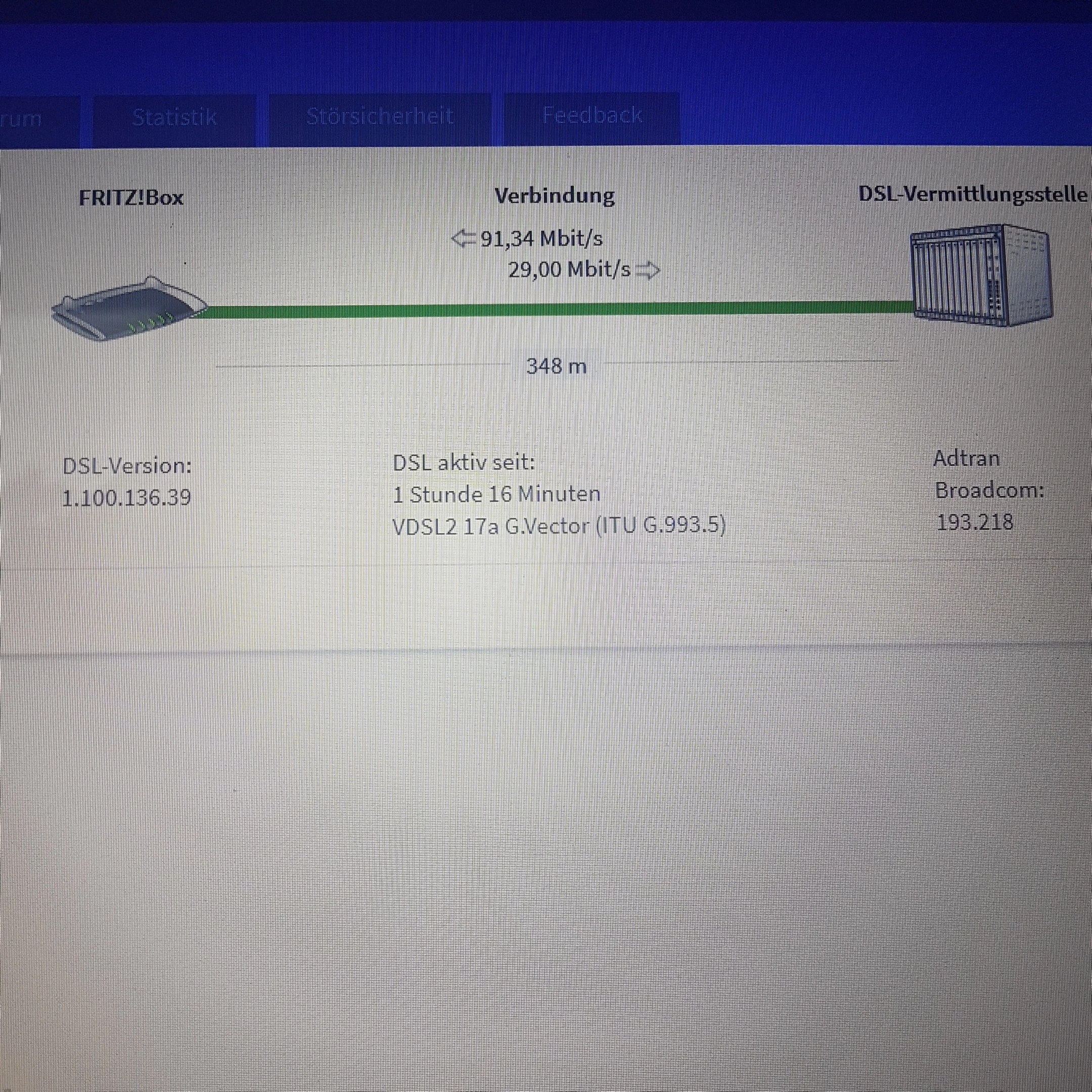 Und die 100MBit/s tauchen je nach Netzkonfiguration in der Fritzbox auf. Zuerst war auch bei mir 50MBit/s zu erkennen und nach Umkonfiguration am DSLAM auf Supervectoring tauchte plötzlich 100MBit/s als Kapazität auf. Spielt aber keine Rolle - Hauptsache die Leitung brummt.