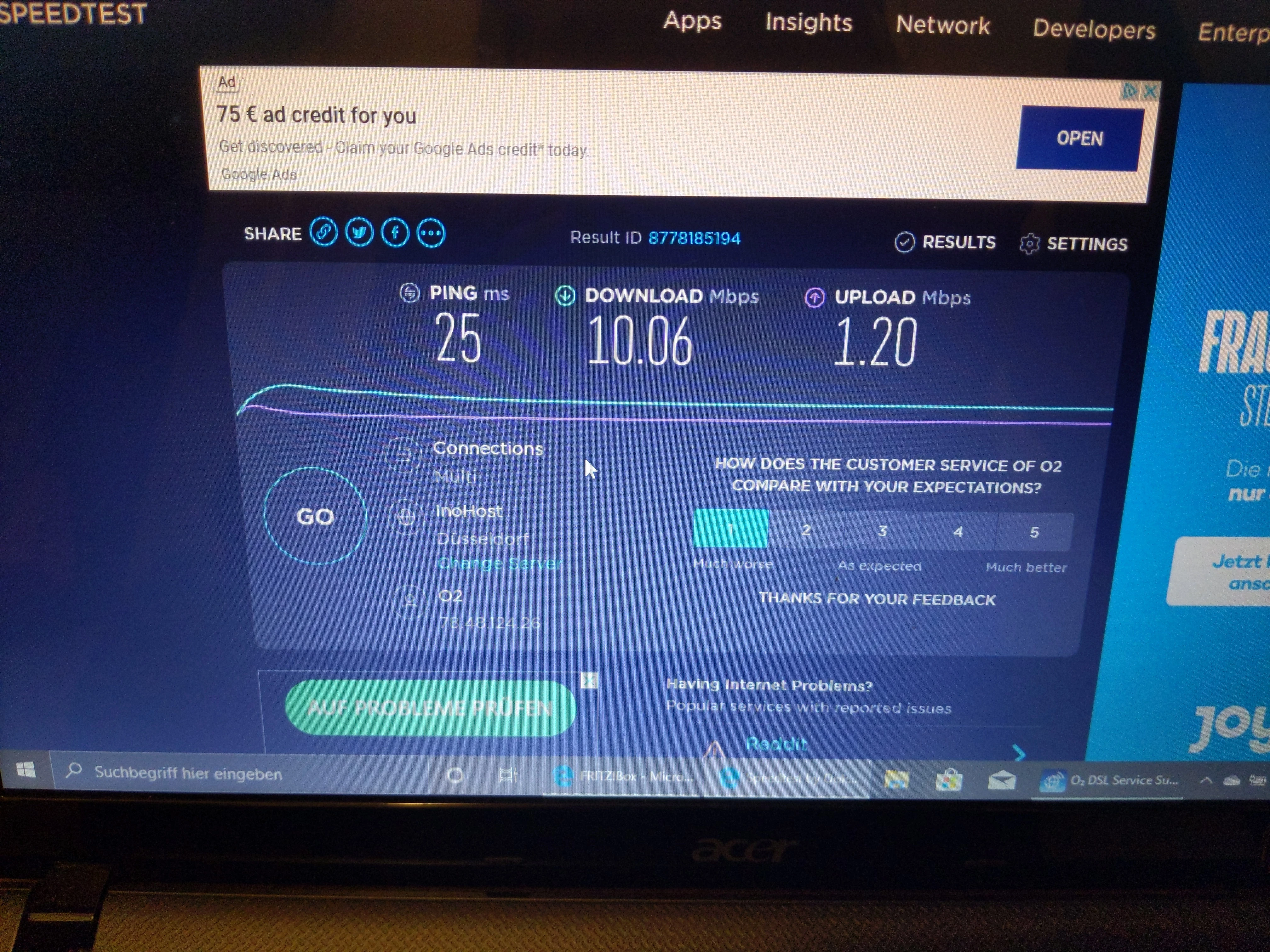 Du hast aber bestimmt über WLAN gemessen und die Messungen sind untauglich.  Siehe auch https://breitbandmessung.de